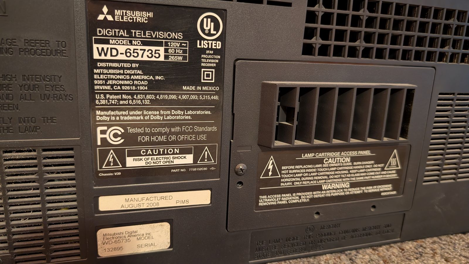 Mitsubishi 65" 1080p DLP Television in Good Working Condition.