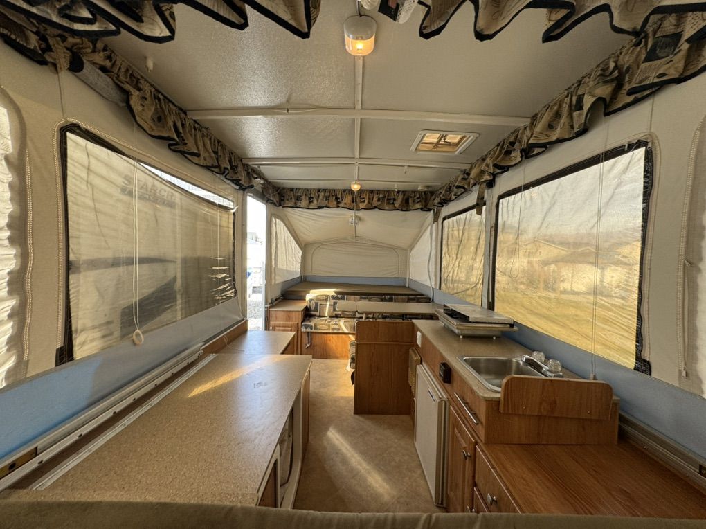 VenmoMint Jayco J series M-1008 popup in super clean condition Garaged and barely used. Fully loaded model shower, toilet, huge king bed Up front Double bed in rear, Plus a table that folds to a twin bed Sleeps 7 Outside shower/inside shower Tons of storage - huge durable storage box up front for gear that is in perfect condition with secure latches Custom Diamond plate to offer protection for the front and rear body from damage/rock chips or randomly hitting things causing damage which is commonly found on other models. Thick canvas and screens are in amazing condition No pets or smoking All privacy curtains in excellent shape- Roof is in like new condition- never any leaks 19k btu Thermostat controlled heater- Works amazing !!! Stove can be used inside or outside 3 way fridge works great Co2 detectors Electric brakes Bunk overhead lights/fans Comes loaded with camping supplies water hoses Two 5g propane tank Never run out of water with a 23 gallon fresh water tank is huge + an addition 6G hot water = 29 gallons of fresh water which rivals many bigger bumper pull trailer tanks. Shower enclosure can be taken down when not in use and hidden away Tires and spare are in excellent condition Electric brakes Bearing buddies on the axles for quick servicing- no need to pack bearings! Crank is smooth and easy to raise Set up to Easily add a portable AC unit with remote to bring AC during those trips down south to Zion or Moab mid summer