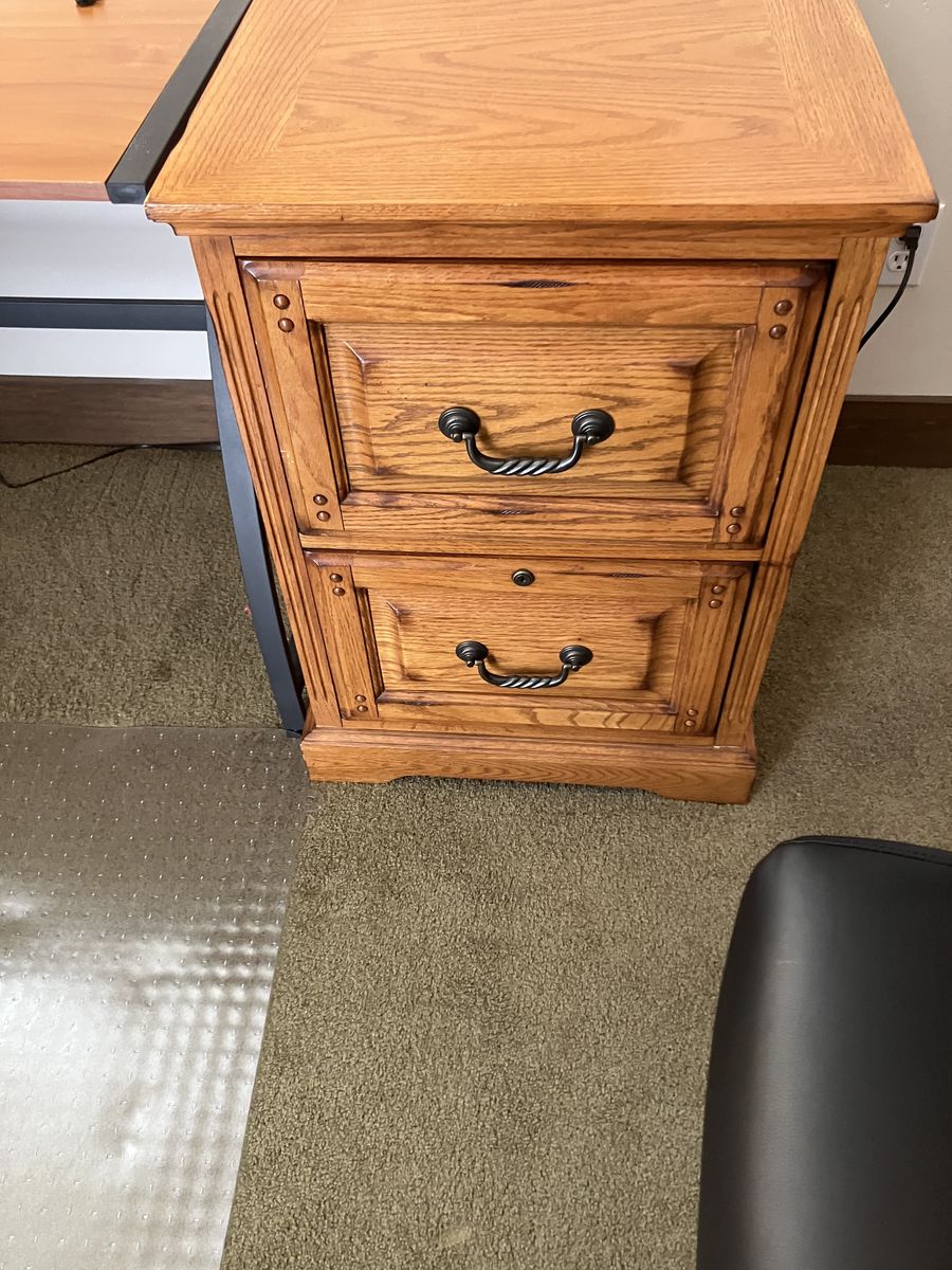 PayPalL shaped computer desk. Hardly used. Oak file also available for $75