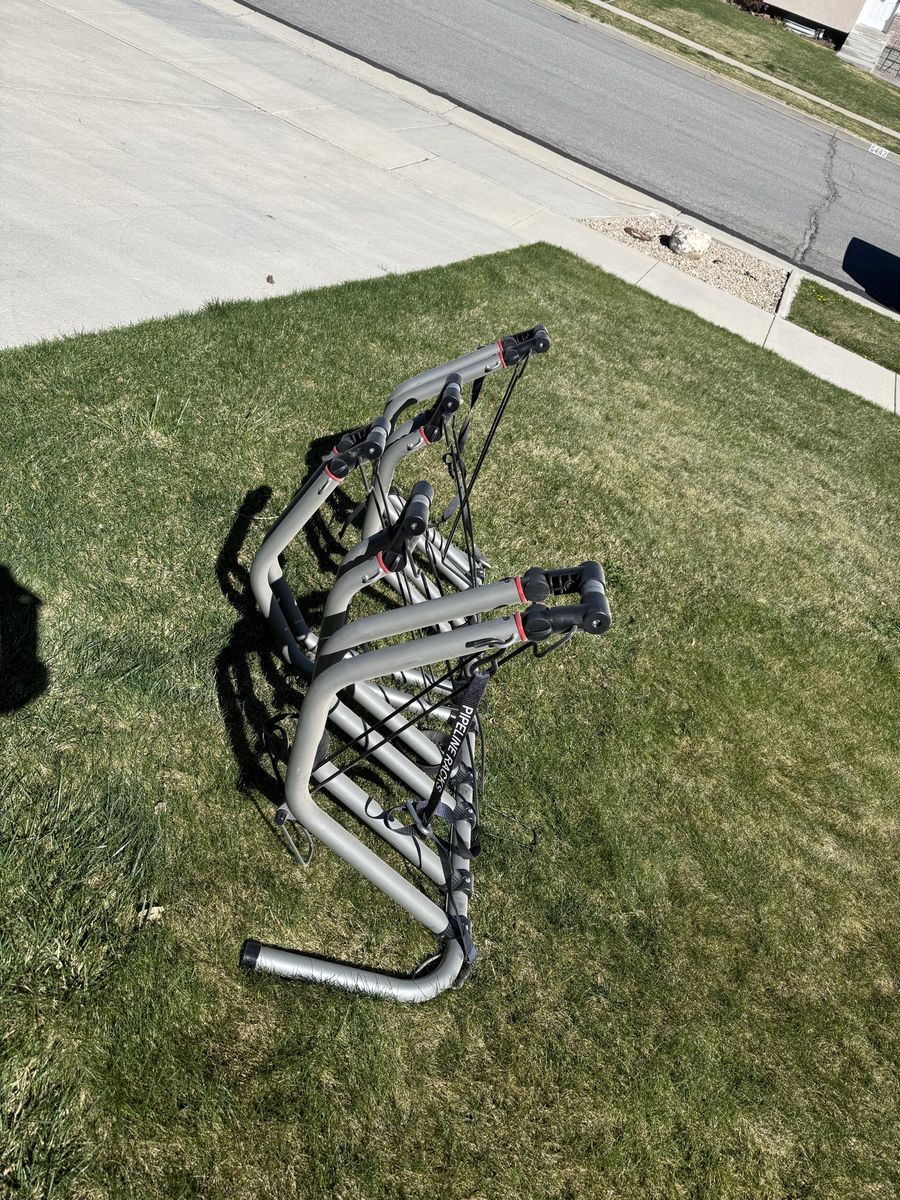 VenmoOnly used a few times. Fits full size truck. Can be used as bike rack on ground or bed of truck. Plastic on middle rack is cracked but still works great. 400 O.B.O.