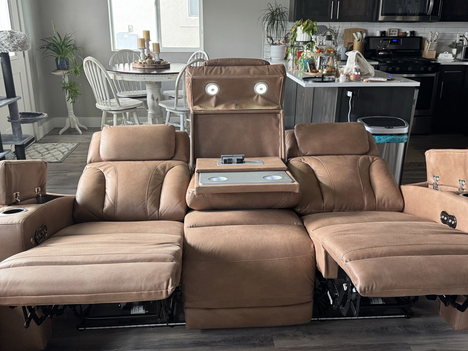 ApplePayBeautiful power reclining set. Each piece has two zero gravity recliners, cubbies in each armrest, center console with power supply, wireless charging, and reading lights. I bought them as a set in November, but I have decided to go with a different style.