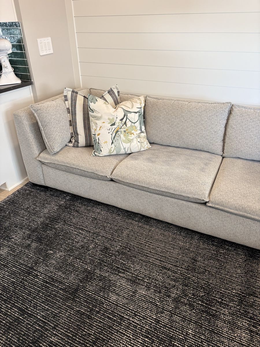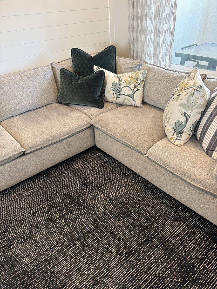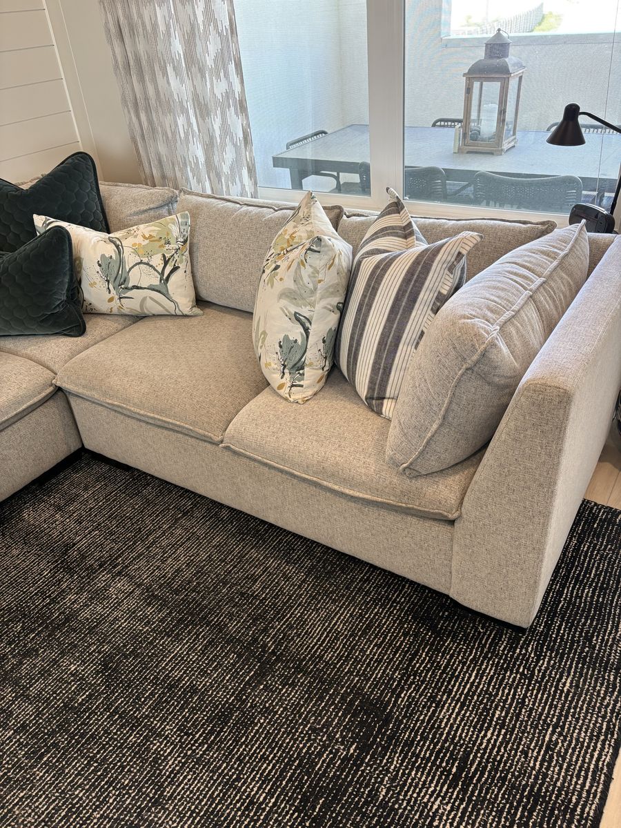Three piece sofa sectional, includes pillows. Purchased with model townhome. Used two years in model and then two years by us after closing. Professionally cleaned after closing. Very good condition. Priced to move.