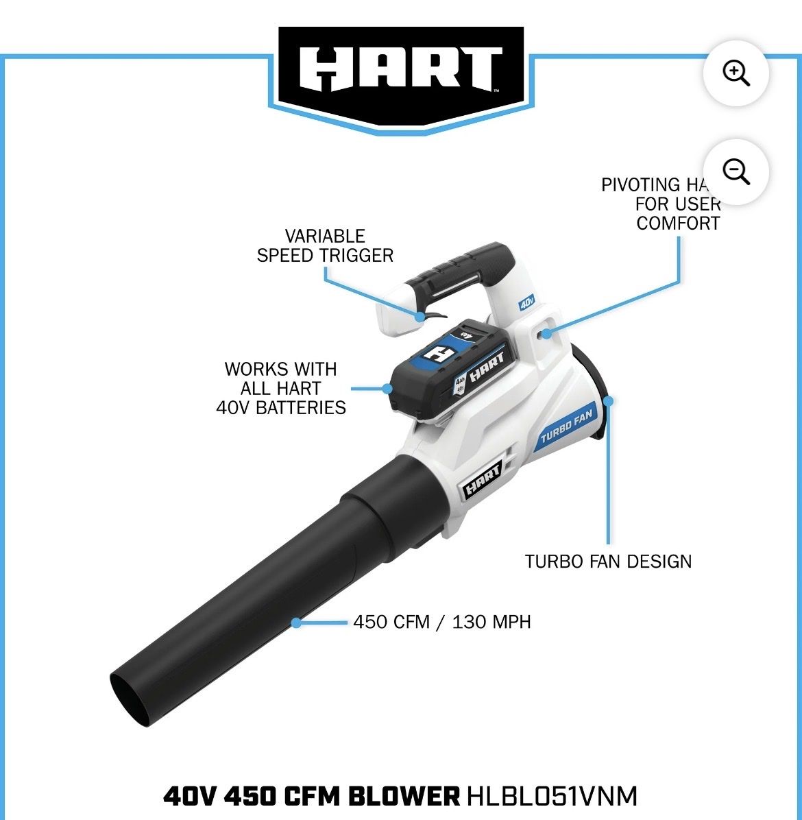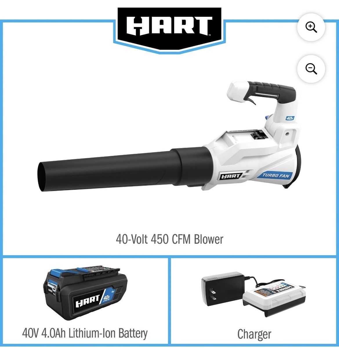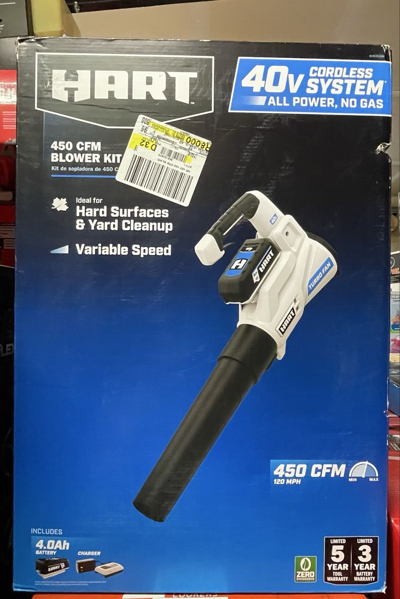 New HART 40V 120 MPH at 450 CFM Cordless Axial Leaf Blower Kit, (1) 4.0Ah Lithium-Ion Battery