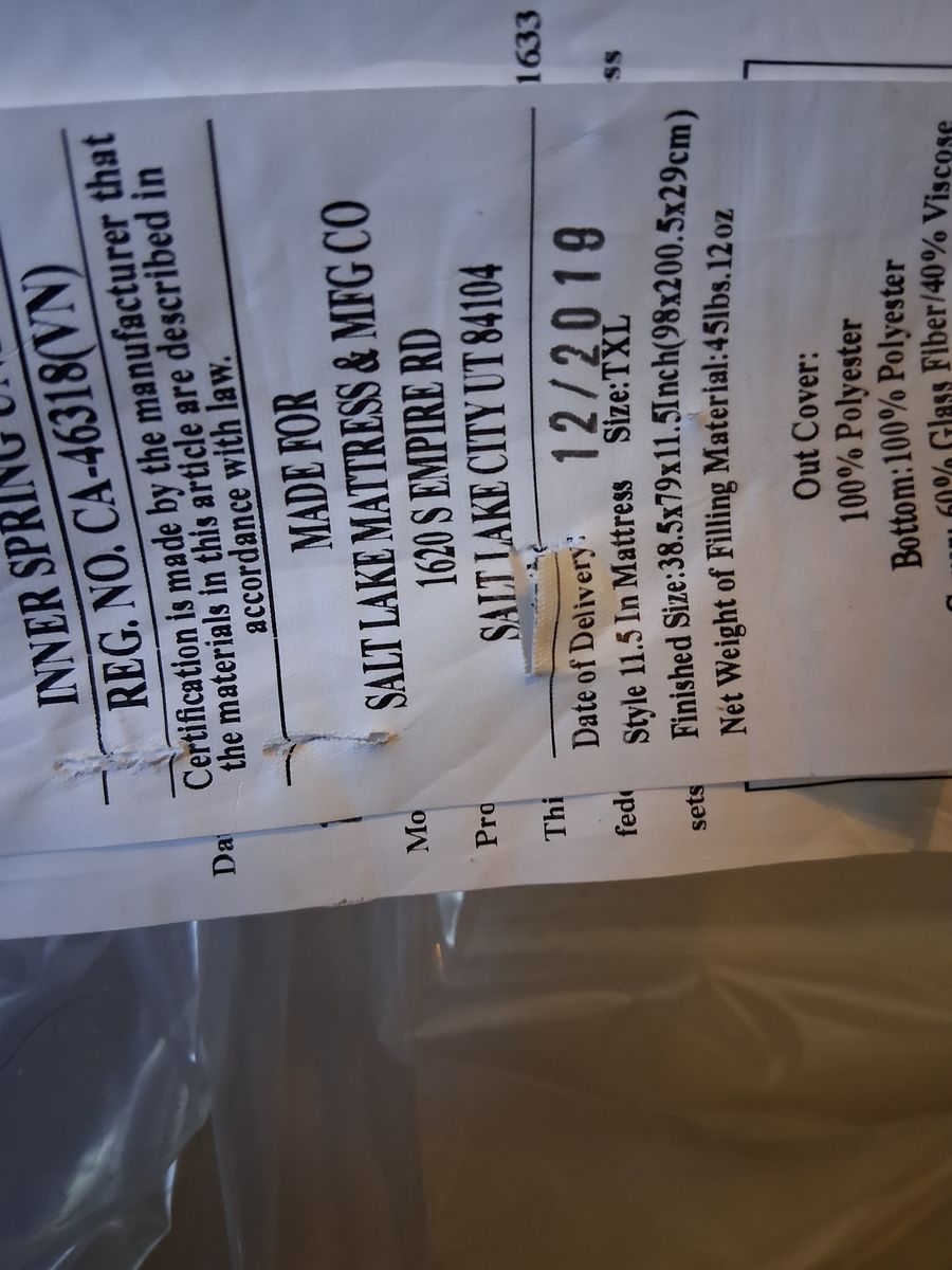 Twin Mattess made by Sunset. Its an XLT, so its the largest twin u can get and the T means Tall (11.5 in thick). Length is 80 in and width is 39 in. Great shape, but no room for it, so got to sell it. Very comfortable. Asking $80, no venmo, etc, just cash. Thanks!