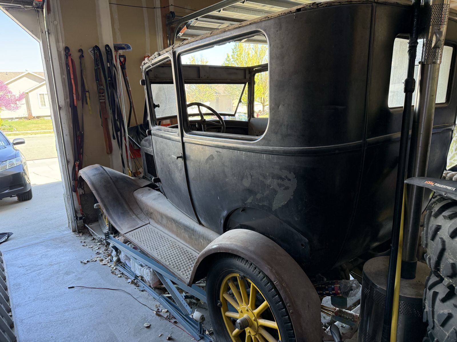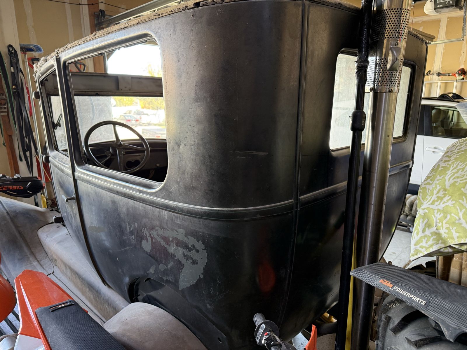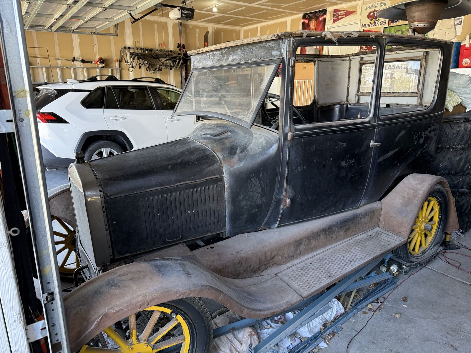 VenmoBody, hood, frame, wheels, floor and axles in great shape! No rust. Engine and transmission look good. Has crank start and electric start. Hasn’t run since 1969. Been garaged since. Fenders are rough. Missing roof and some other parts to complete it. Have 2 extra wood wheels. 3500 O.B.O. No trades.