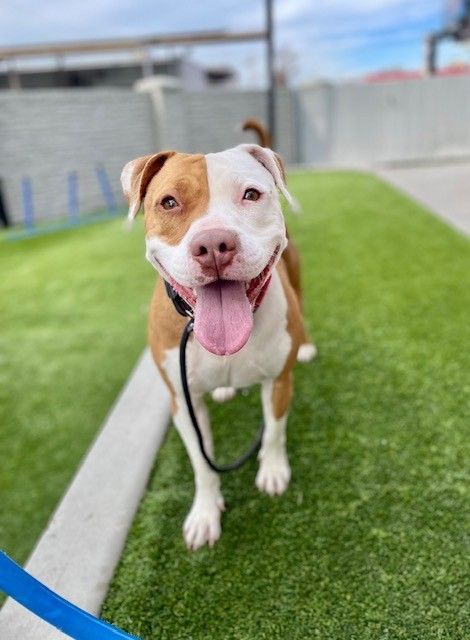Hi, I'm Jazzi - yes, like jazz music, I've got rhythm, I've got soul, and sometimes I've got a whole lot of solo energy. I'm a 4-year-old pit bull who believes life is better when you add a little razzle dazzle... or should I say Jazzi dazzi. I'm a playful, spirited girl who loves to zoom, tug, and show off my impressive toy moves - if there were a Grammy for enthusiasm, I'd already have a shelf. I'm working on my manners and learning that not every moment needs to be a high-energy concert, and I'm getting better every day with positive guidance and consistency. Once I've had a chance to get my wiggles out, I can settle in and enjoy some good company. I'm looking for an active, patient home that's ready to help me keep fine-tuning my greatest hits while giving me plenty of exercise, enrichment, and understanding as I warm up. If you're ready for a loyal sidekick who will keep life upbeat and full of personality, come meet me - let's make beautiful music together.