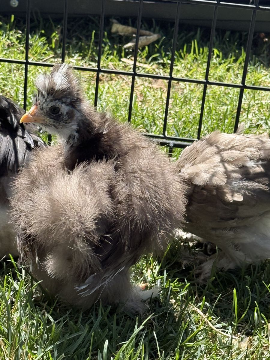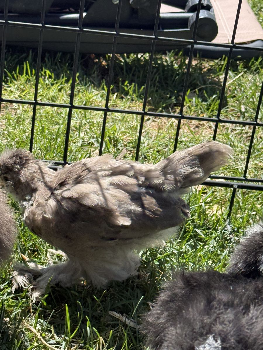 2 are about 4.5 weeks old and are chocolate mottled silkies