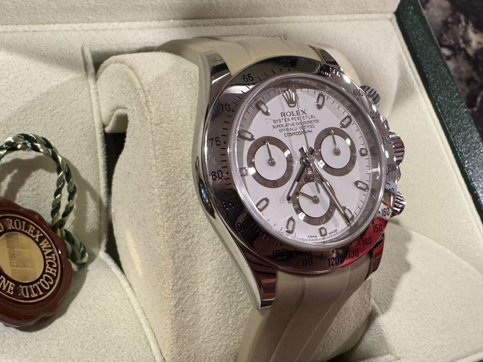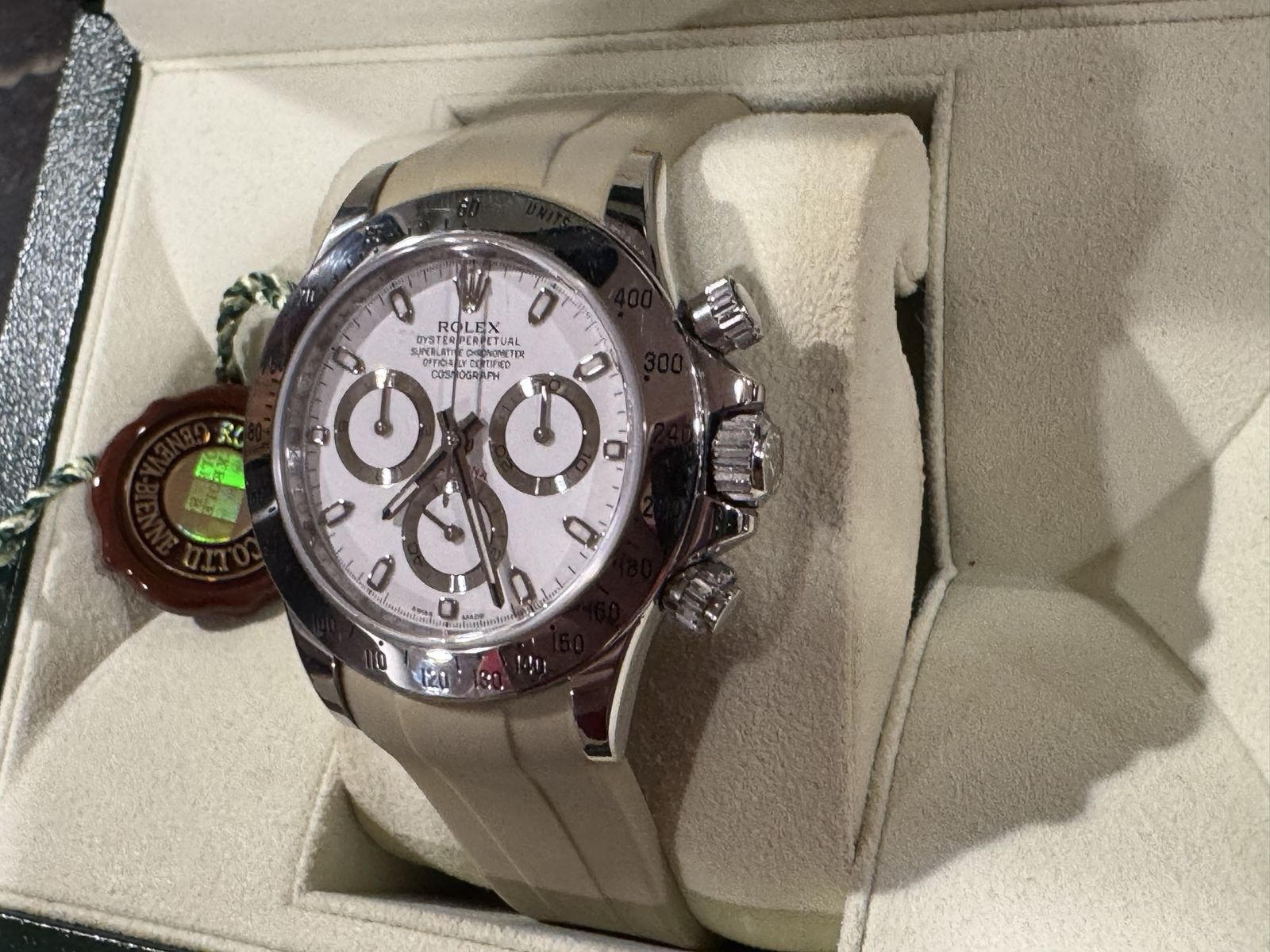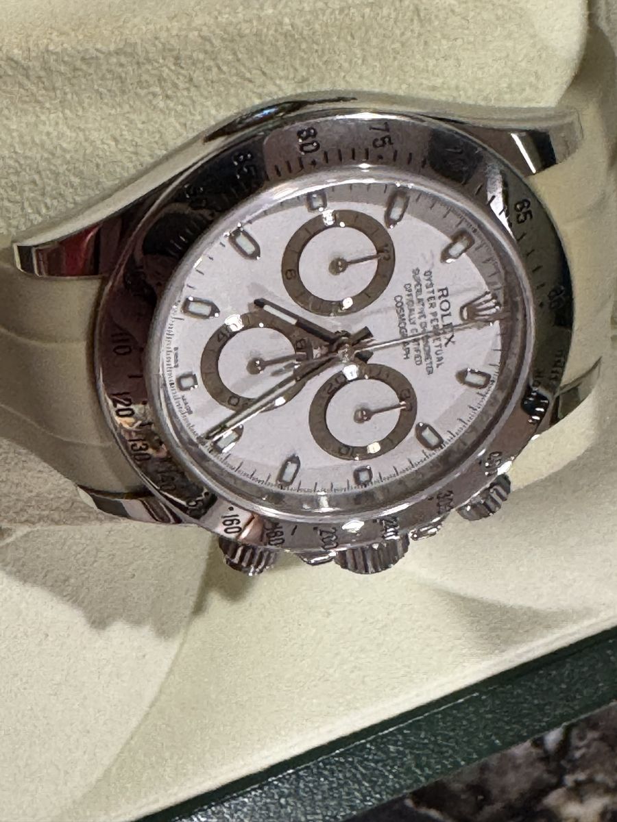 Pre-owned Rolex Daytona 116520 white superluminova dial with box and papers! No trades, cash/cash equivalent offers only