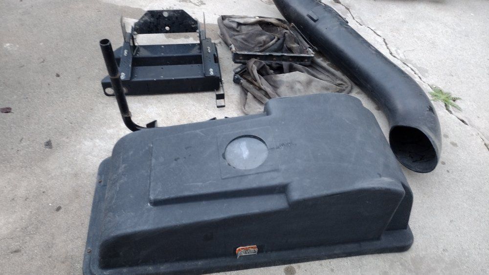 ZelleMTD two bag grass catcher model is in the pictures. Grass catcher includes everything is in the pictures two bags, ( one bag will need a patch) top - chute and mount Comes from a yard machines riding mower