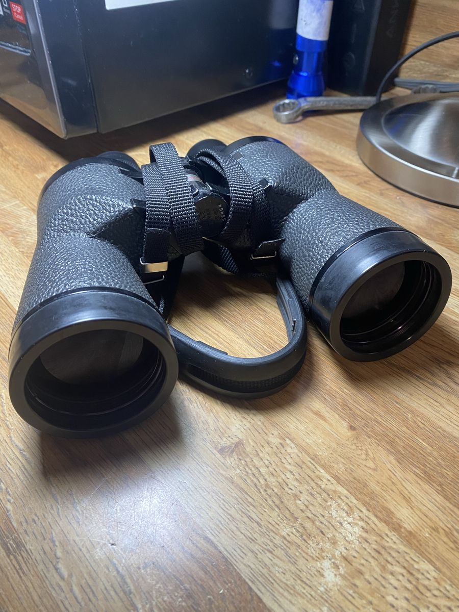 In excellent condition! Rugged and well-made. The view will rival any European binoculars. They are clear, sharp and bright! Completely waterproof individual focus 7X50s. I can’t really explain how nice these are, but you’re welcome to come and look through them.