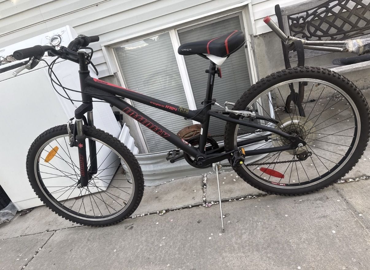 This Bike is still in excellent shape still in excellent condition both tires hold air , tire treads are still new , pedals are good, chain is good , handlebars are good , aluminum frame is still solid and has no cracks, brakes work great and shifters work great , 7 speed , Front suspension works great