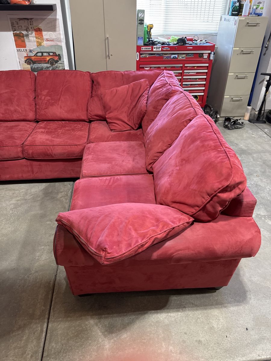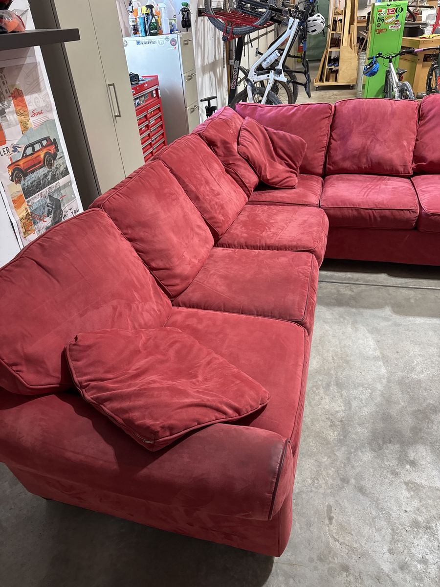 VenmoThis sectional is older and well loved but still in decent shape. Could use a thorough cleaning but no smells or pet hair. Cushions all come off and it’s pretty light and easy to move.