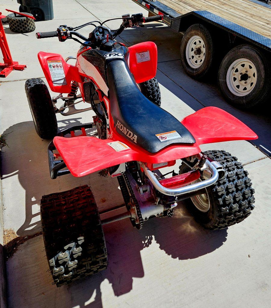 Modified Honda TRX 450 ER with electric start and new rear tires. This is a fast machine, just too fast for where we want to use it.