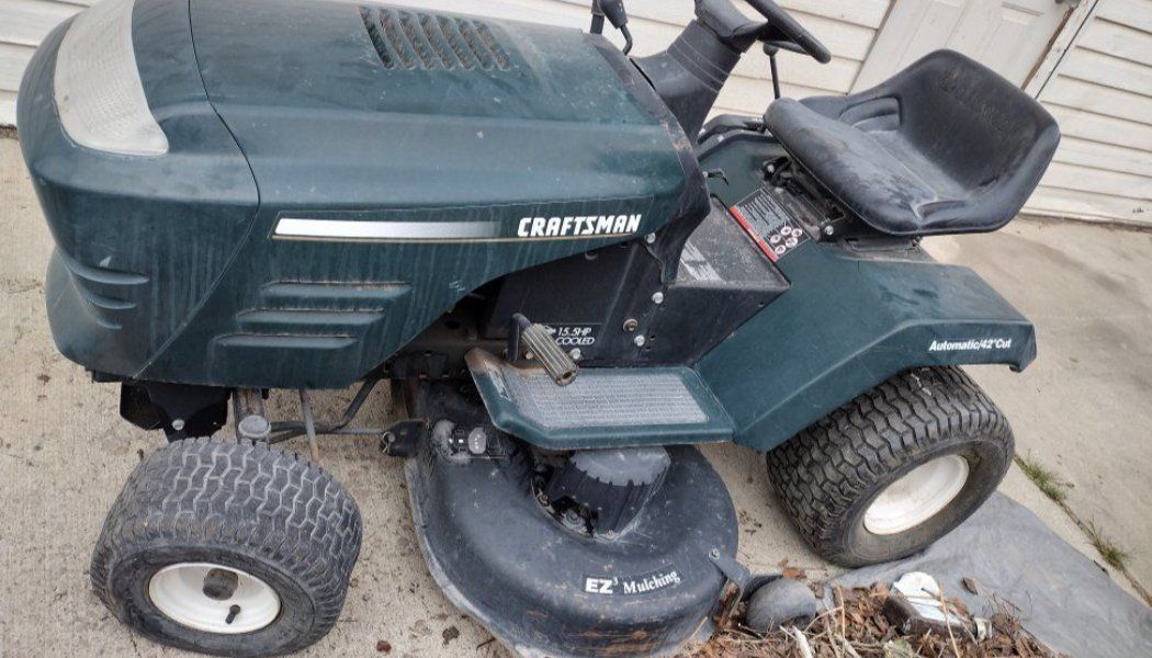 ZelleCraftsman 15.5HP 42"Cut Riding Mower Needs carburetor cleaner to work properly Battery needs charge Start with carburetor cleaner and die