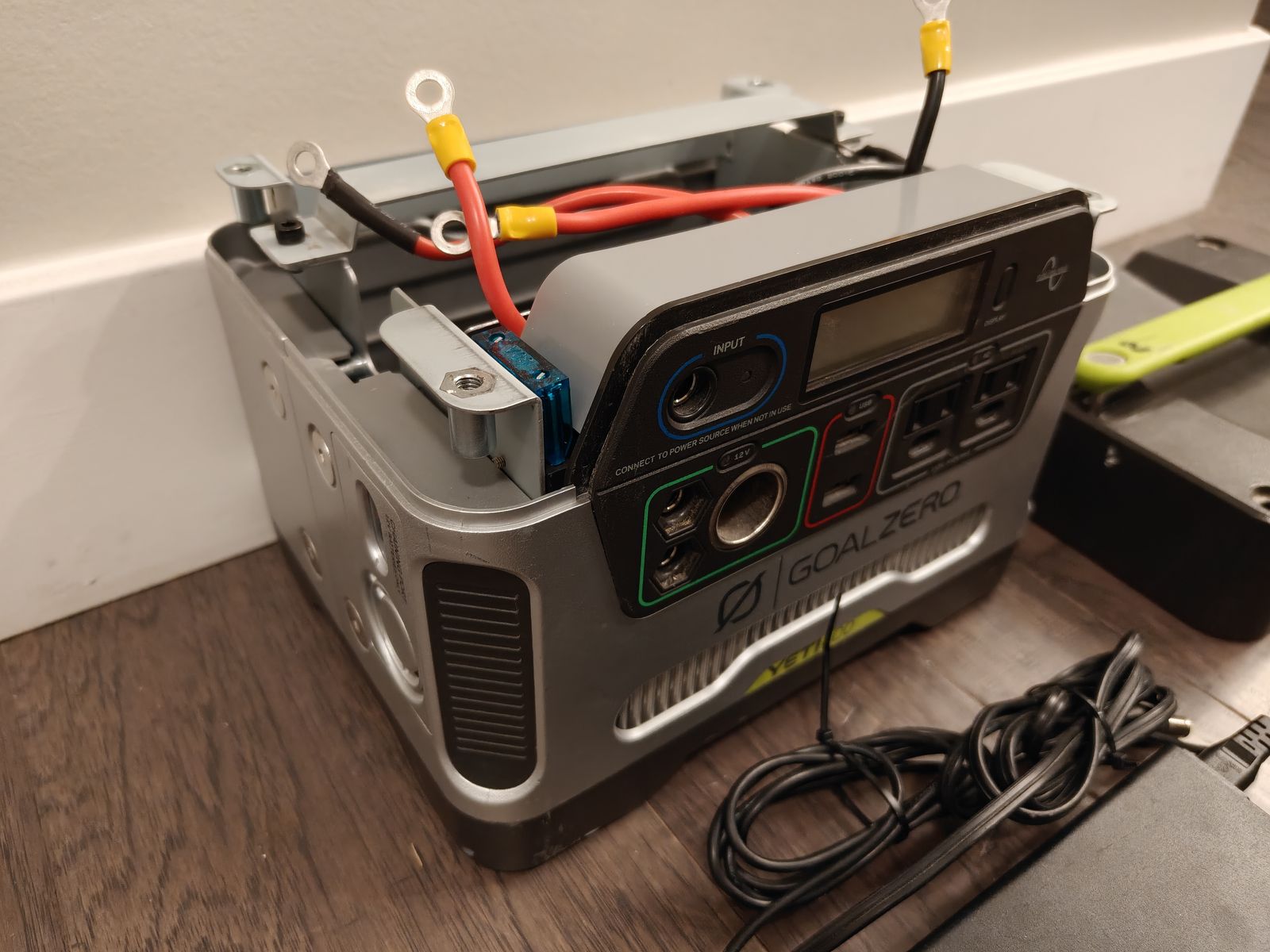 One idea that I've seen online is to drill a small hole through the plastic on the top of the generator and feed two quick connect leads from the battery terminals to the outside of the generator, so that you can quickly and easily connect an aftermarket LiFeP04 charger. It's a little bit of tinkering, but at the end of the day you'll have a reliable Goal Zero generator with the latest battery technology inside of it.