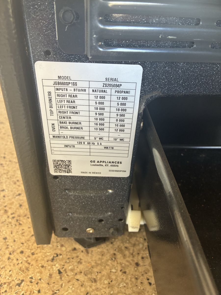 We had plans to convert from electric to gas but plans have changed. This is a very nice Gas Range Oven made by GE. Very clean inside and out. Model is a JGB660SP1SS. $350 OBO
