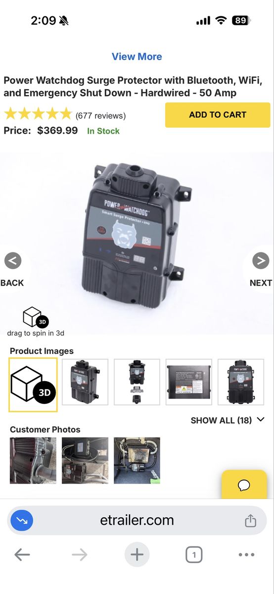 50 amp Hughes Power Watchdog Smart Surge Protector. Has WiFi and Bluetooth connection. This thing is great, installed it and simply prefer the portable option more. Works great, was only installed for one trip. These run about $370 brand new.