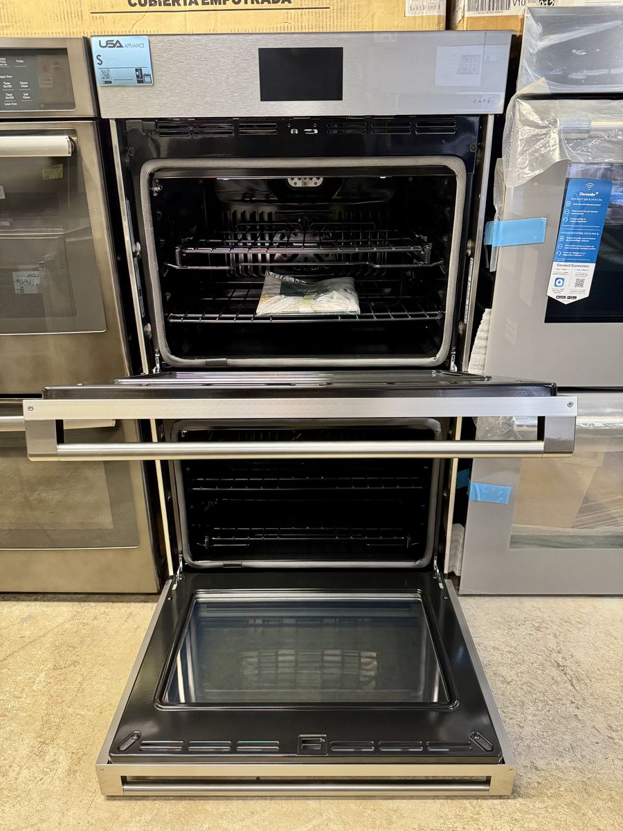Cafe Modern Glass Collection 30 Inch Double Convection Smart Electric Wall Oven with 10 Cu. Ft. Total Oven Capacity, True European Convection Oven, Self-Clean, Steam Clean Option, Scan-to-Cook, Keep Warm, Proof, Precision Cooking Modes, and UL Listed