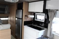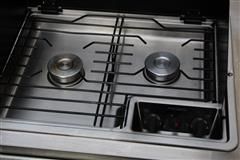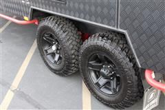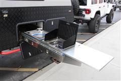 Kitchen & Appliances - **6 cu. ft. fridge/freezer** - Indoor & outdoor propane stove - Microwave, sink, and slim range hood - Fully equipped **outdoor kitchen** with stainless steel sink and prep table Bathroom & Water System - Full fiberglass indoor shower and porcelain toilet - Outdoor shower - **63.4 gal fresh water**, 26.42 gal grey & black water - Triple-filtered drinking water system with hot water Interior & Furnishings - Sleeps up to **5 people** - **Queen bed + 2 bunk beds + convertible lounge** - Premium leather seating, wood-look vinyl flooring - Modern timber-finish cabinetry with soft-close drawers Exterior Design & Storage - Aluminum composite body with diamond plate protection - Large pass-through storage - 13 ft electric awning - R16 spray foam insulation for roof and walls Chassis & Suspension- Hot-dipped galvanized steel chassis