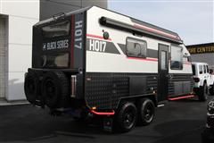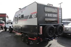 Zelle2024 BLACK SERIES HQ17 off road. original $59,899 MSRP Built for real off-road use with independent suspension, galvanized steel chassis, 16″ off-road wheels, and stone-guard protection. Sleeps up to 5 with a queen bed, bunk bed, and convertible lounge, featuring premium leather seating and modern cabinetry.