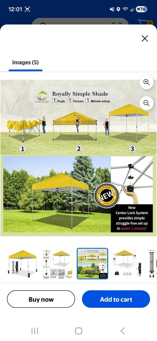 8' x 8' Crown Shade Instant Canopy Yellow Includes: Carry Bag & Stakes Brand New **
