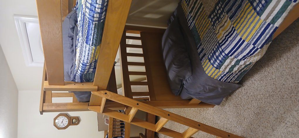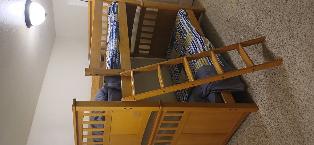 ZelleThese beds work as separate twin beds or as a bunk setup. comes with mattresses and bedding!