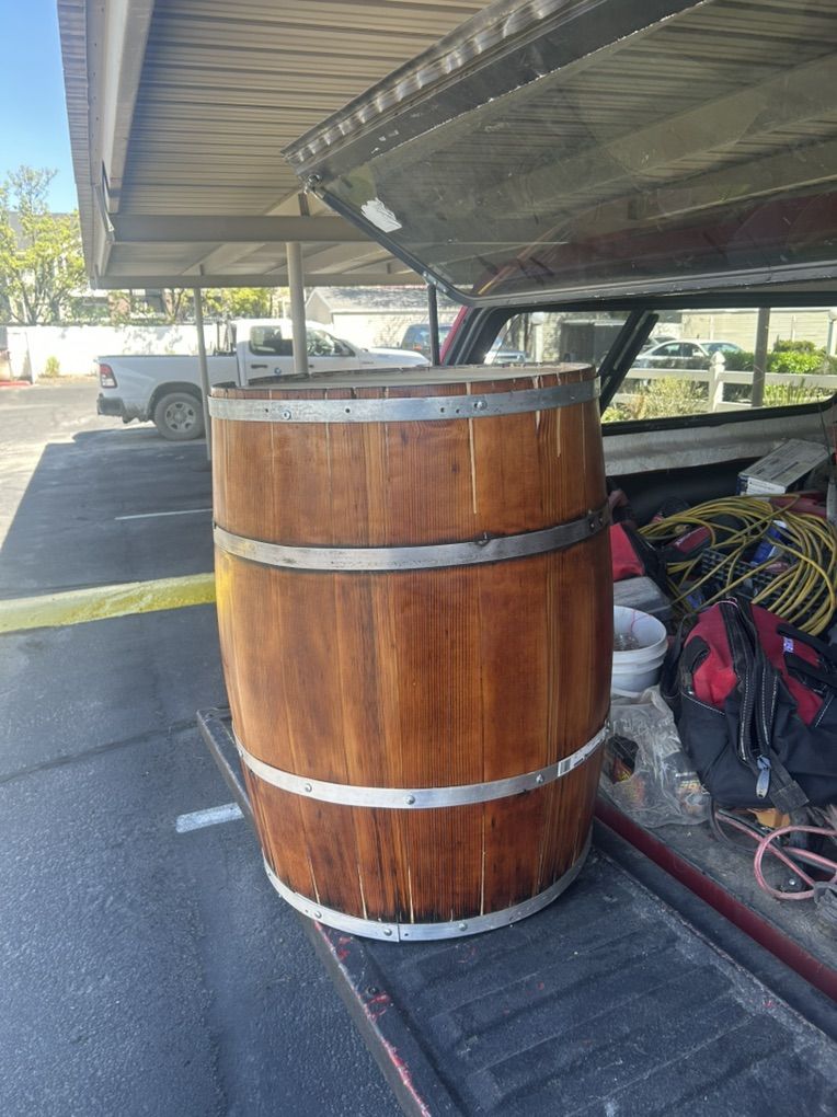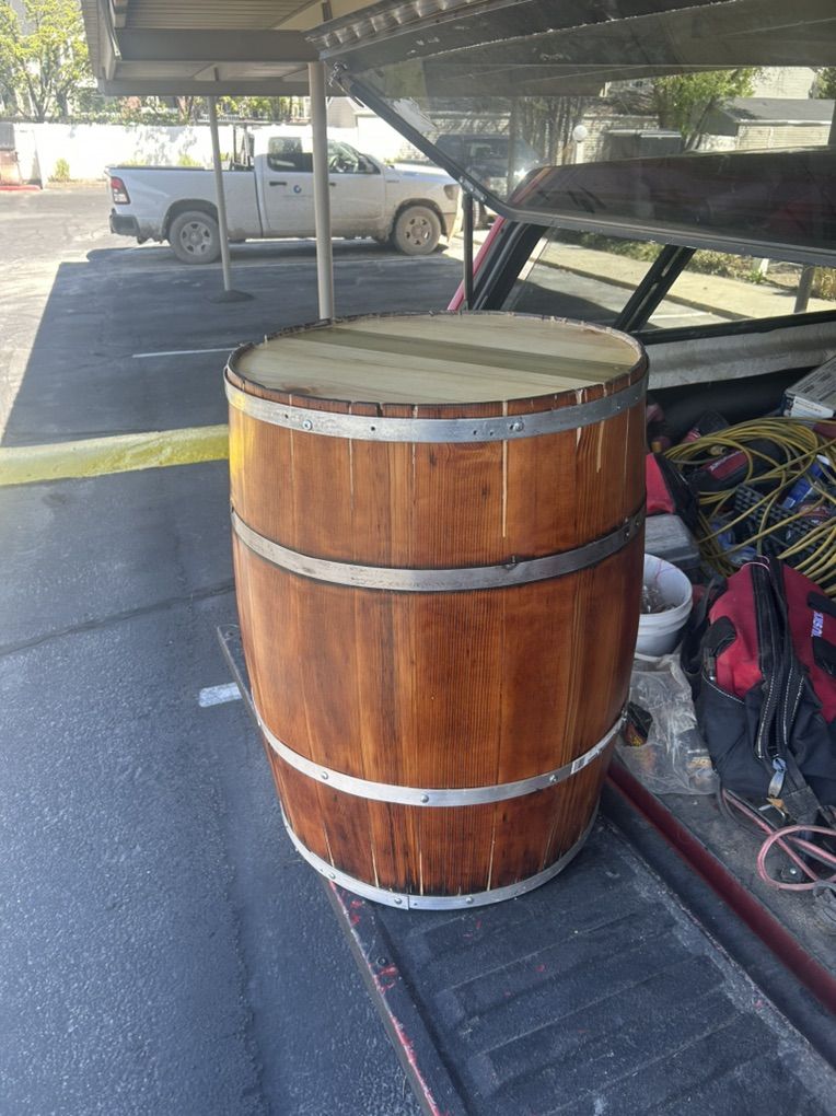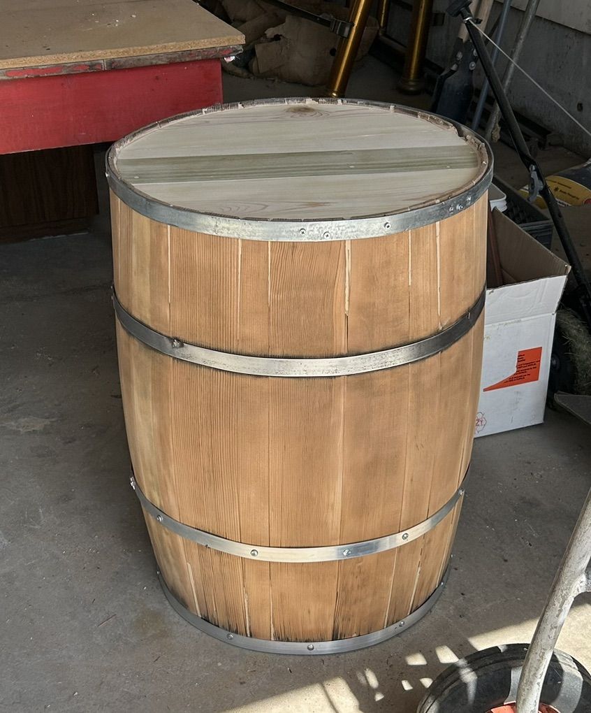 VenmoWooden barrel that once held potatoes. It’s been refinished and a new bottom and top put on it. This is more of a decorative piece in its current condition. You can use it as you see fit.