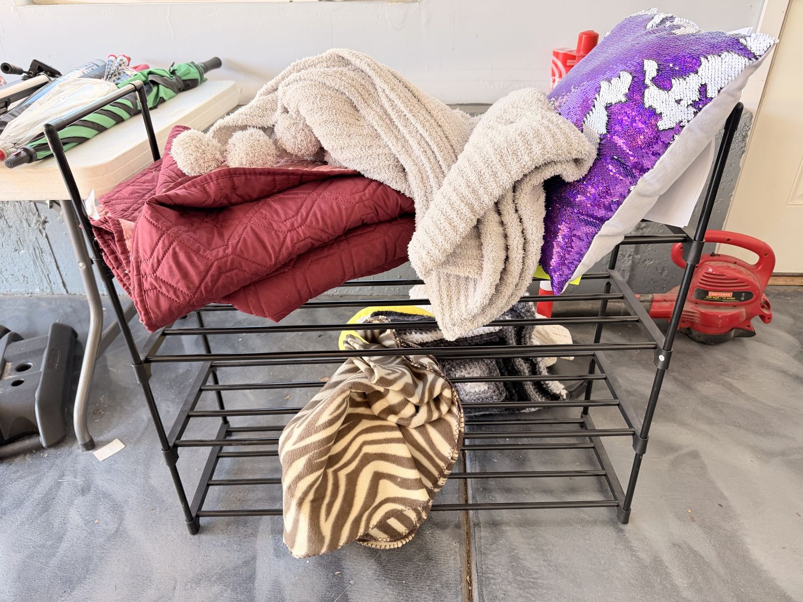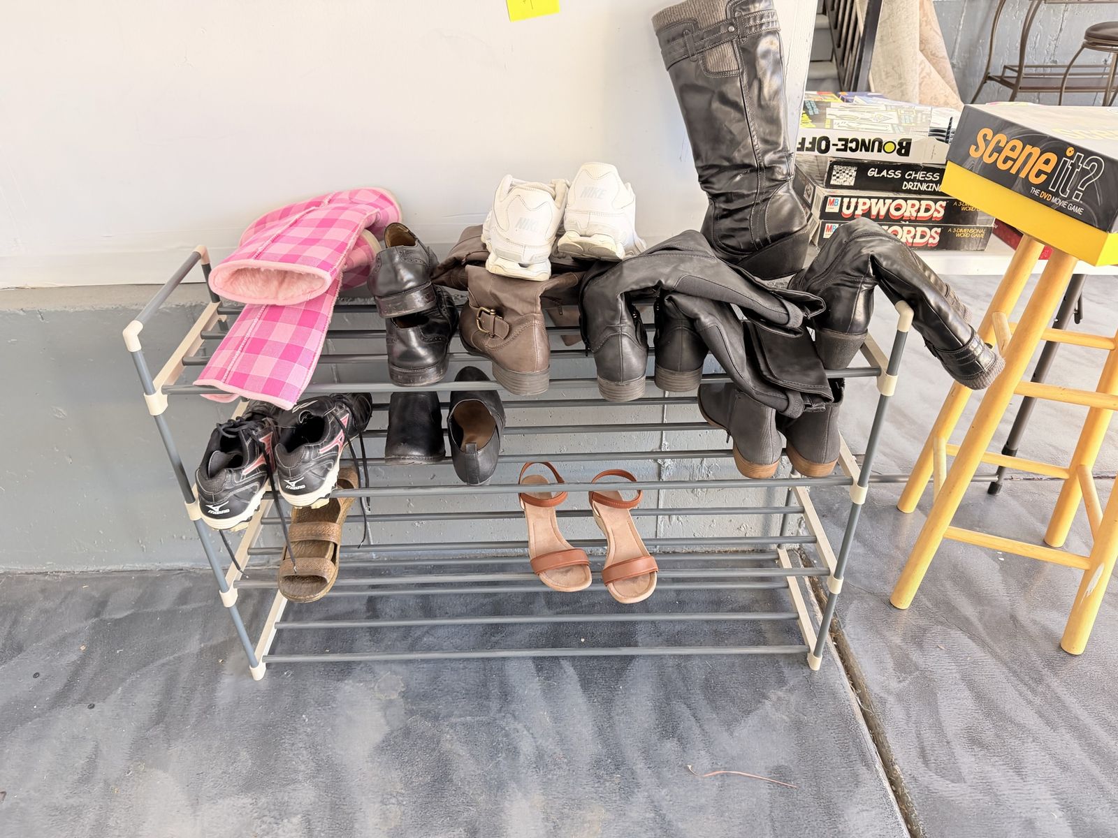 Garage/storage shelves $10 to $25 each Shoe racks $5 each