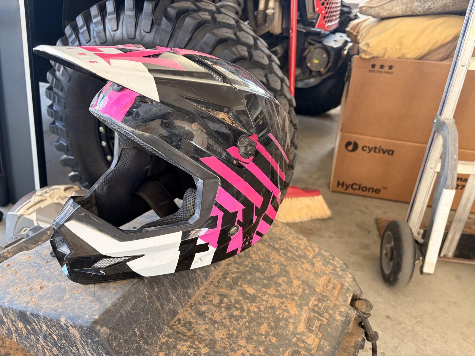 Have this fly racing helmet. Use it couple times just needs to go to cleaning from all the dust. I believe I have some goggles to throw in as well Asking $60