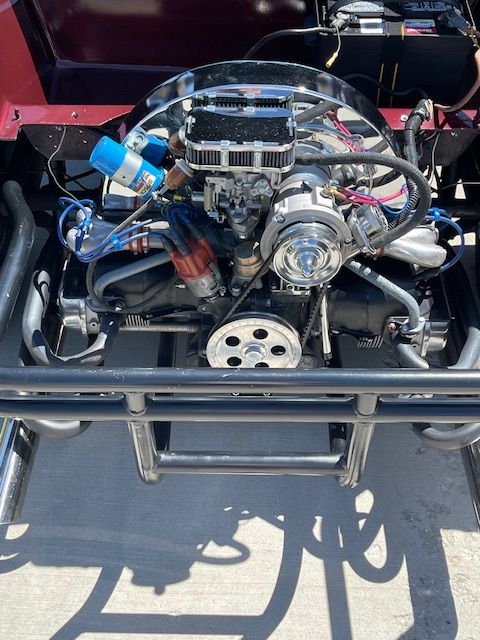 This Buggie has a brand new engine (1600), new tires, new Brakes and lines, new top, new gas tank, new brake, gas and clutch assembly, new head lights (led), and new steering wheel. This is a blast to drive. You'll get honks and waves everywhere you go.