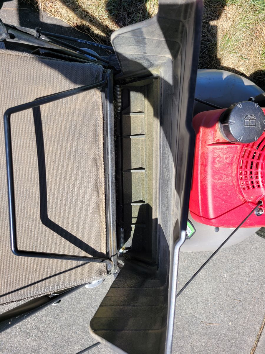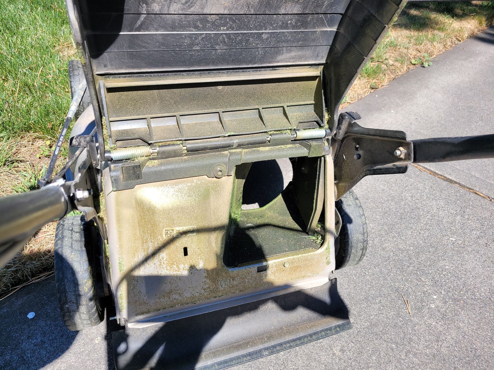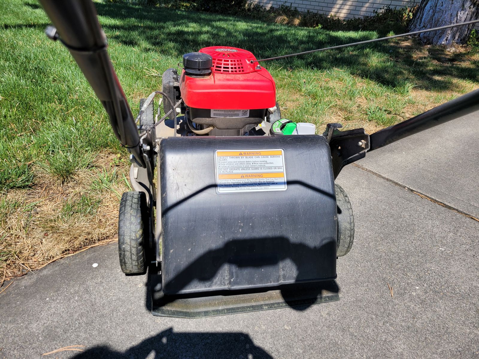 Starts reliably. Bags like a champ. Switches to mulching easily with the lever behind the gas tank. The handle has two height settings. The wheels have 6. The palm-activated wheel speed controller lets you go at a comfortable pace