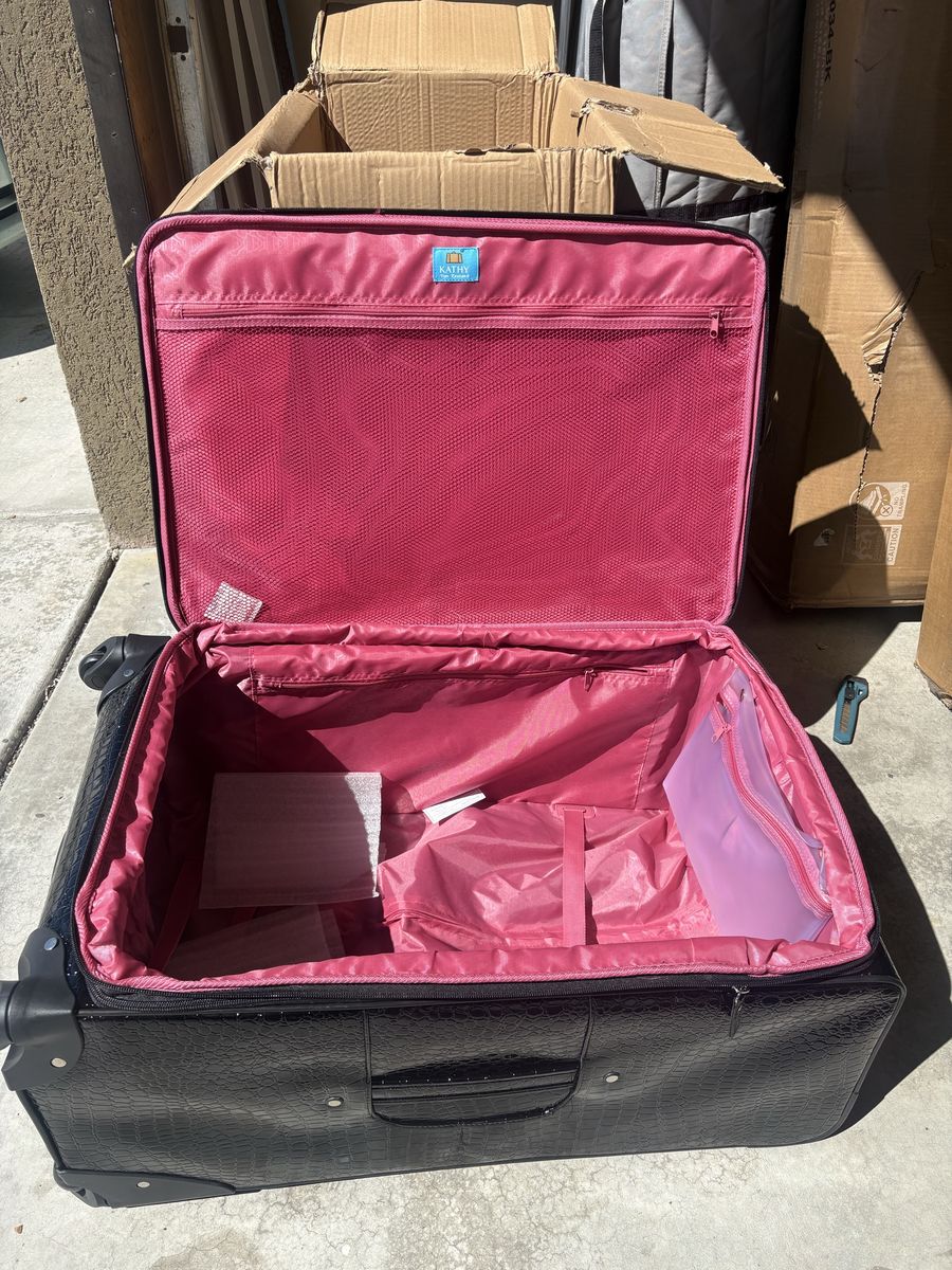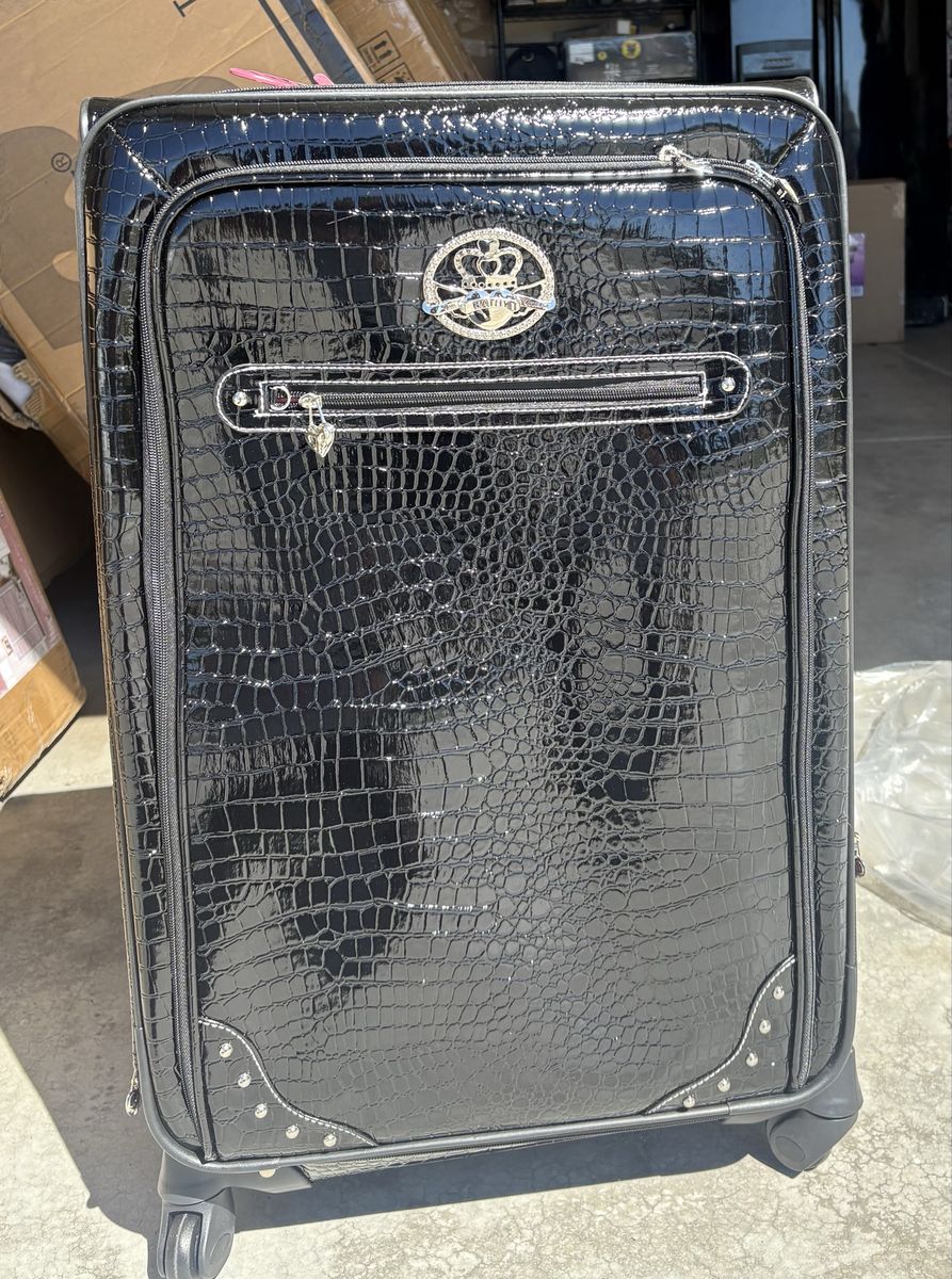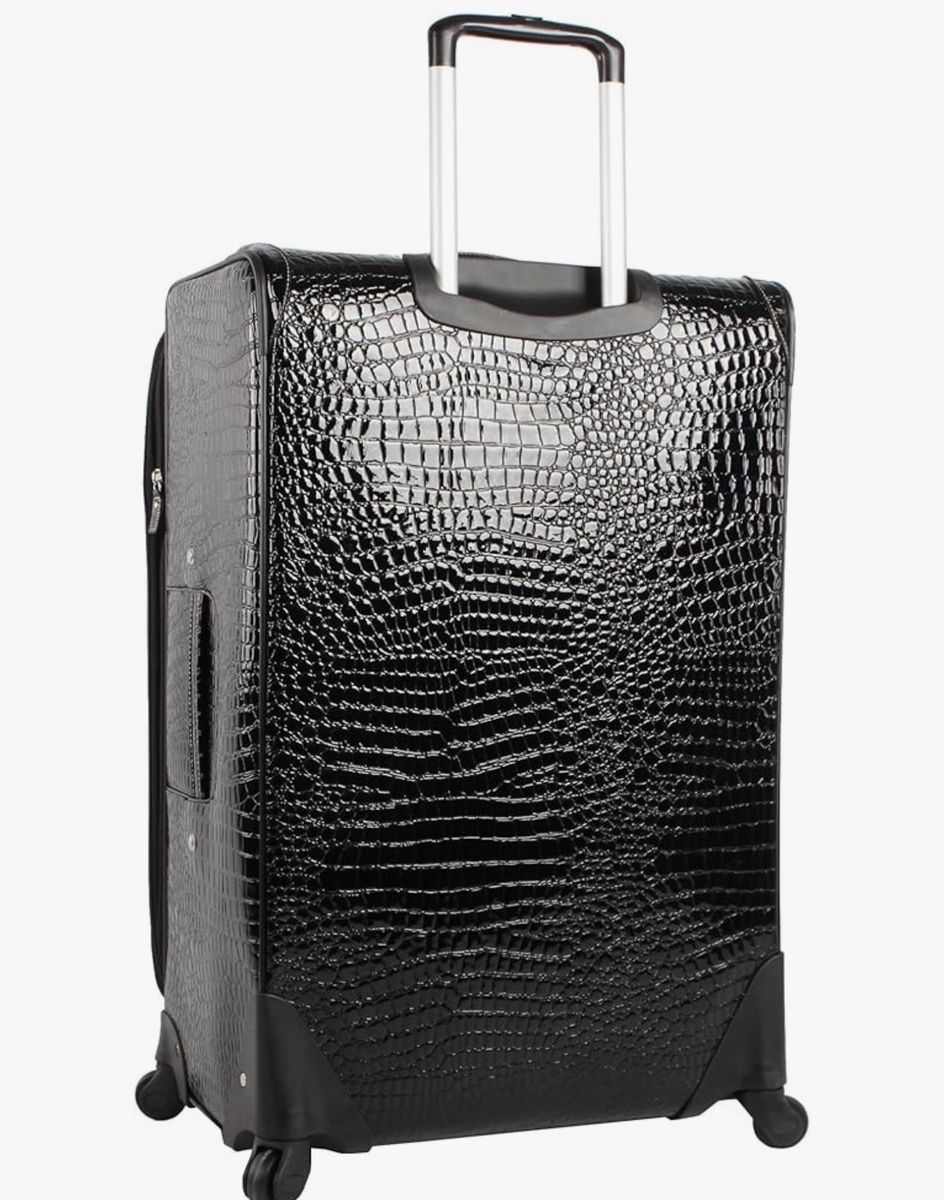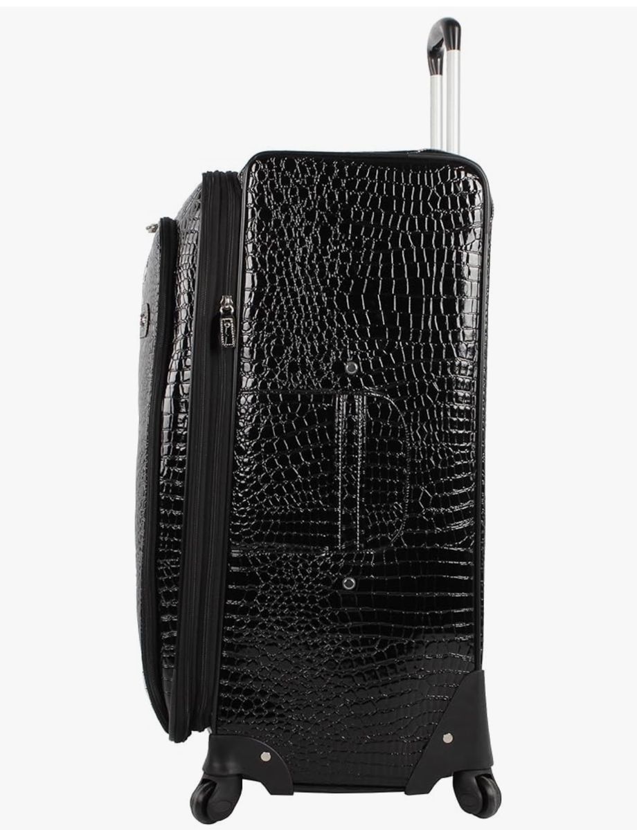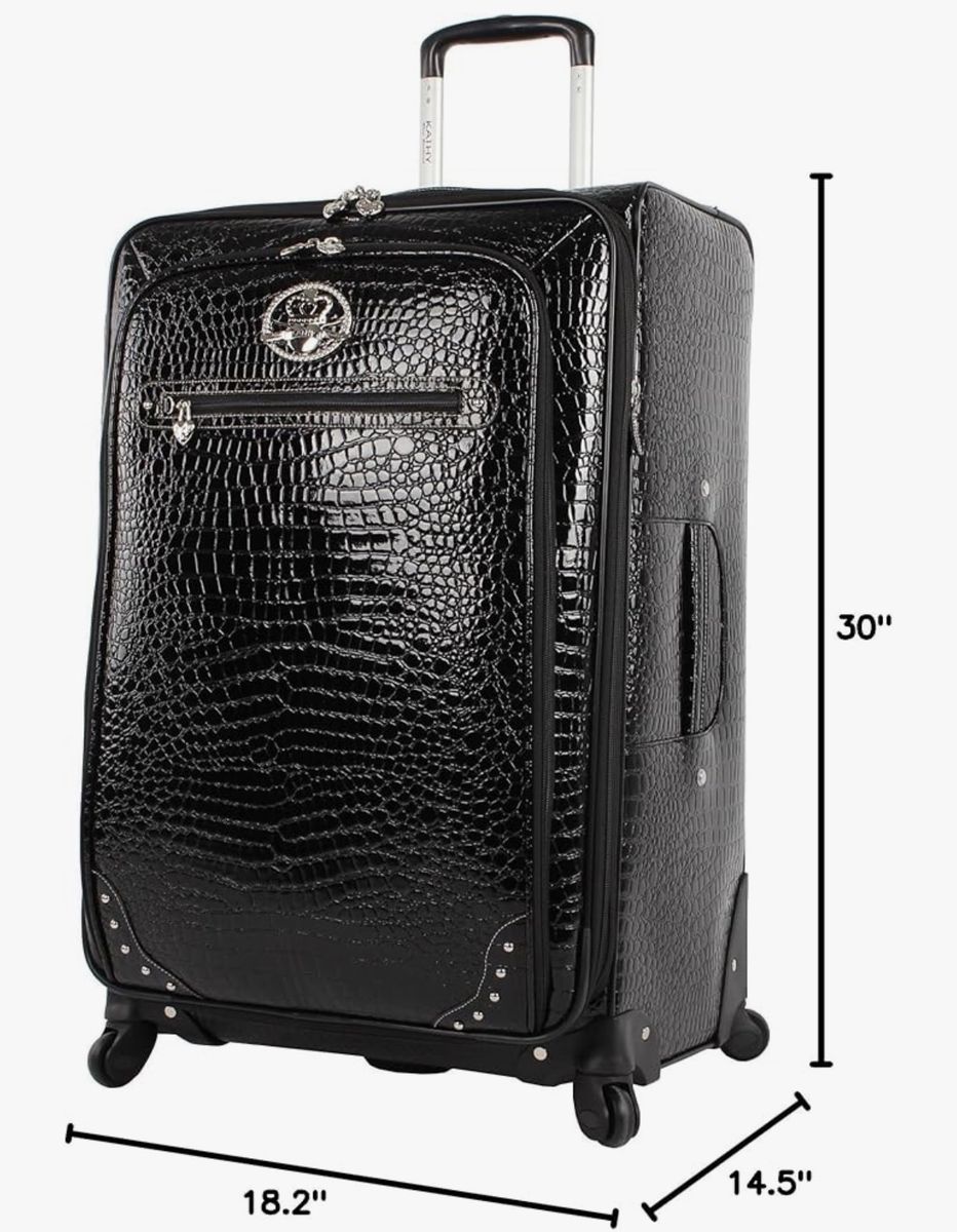 VenmoNew! Kathy Van Zeeland Croco PVC Designer Luggage - Lightweight Expandable 28 Inch Suitcase for Women - Large Durable Bag with 4-Rolling Spinner Wheels (Black)
