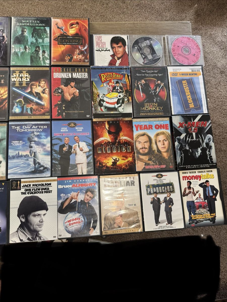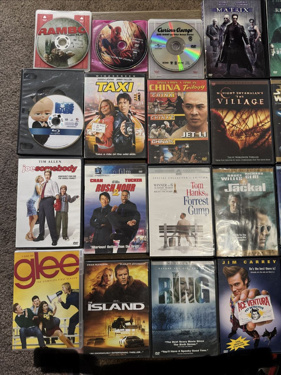 33 Movies, star wars attack of the clones , ace ventura , taxi , boss baby blu-ray , rush hour , matrix, and so much more. Price is $5 per movie if you want one or two. If you buy them all I'll discount 40% off so 45$ for all.