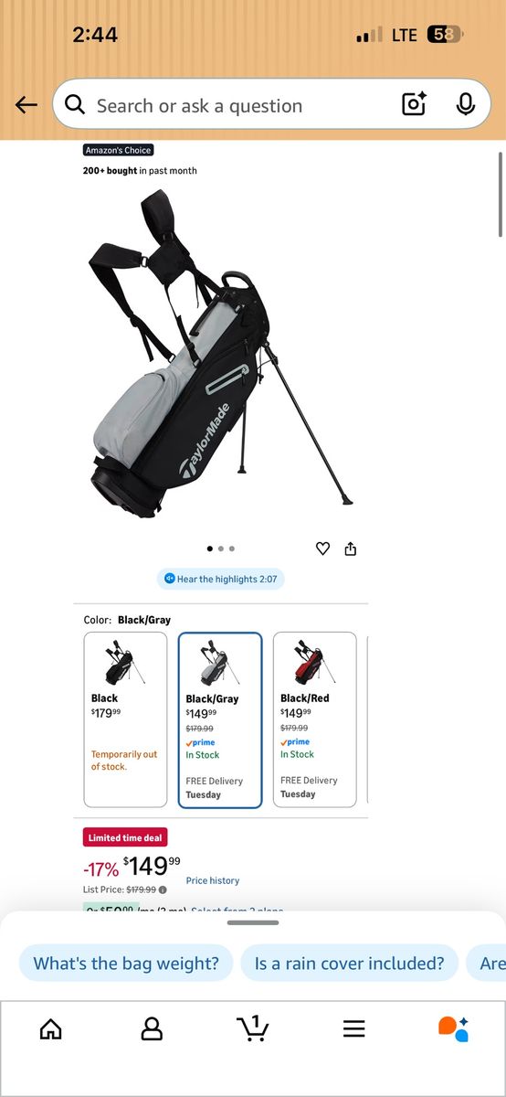 VenmoThis is a very light weight classic stand bag. Used for about a year before I upgraded to a cart bag. Super good condition. Please let me know if you have any questions. They go for $150 right now, selling it for $40 off.
