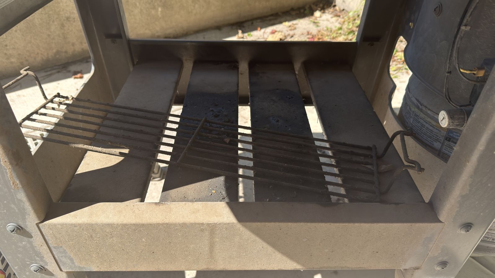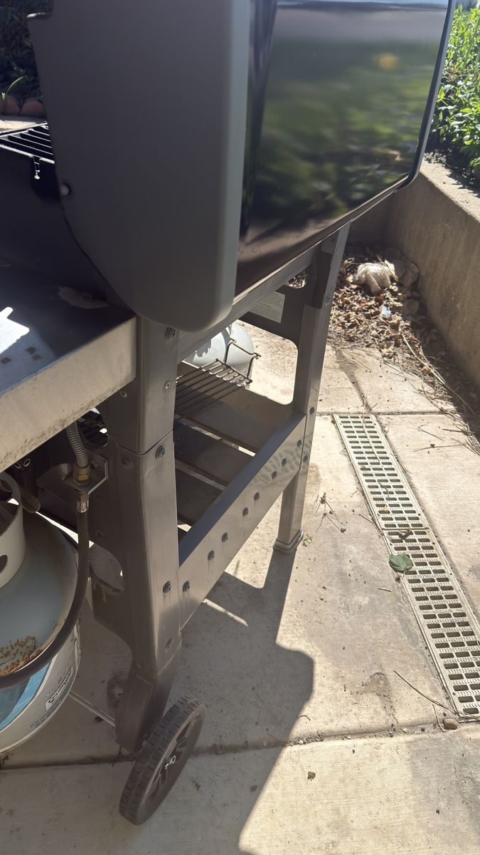 ZelleSelling this grill because like many, I am moving and can't take it with. If I could I wouldn't sell it. It's a great little grill. It's well used and was never covered. Comes with a free, full propane tank. The one that's on there is nearly empty. Be sure to ignore the gas level gauge on the grill. It's a LIAR! Big propane just wants to sell more propane.