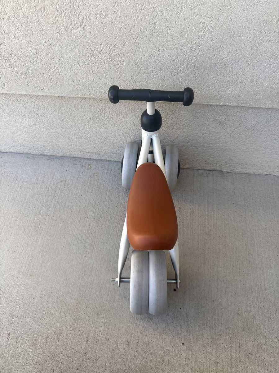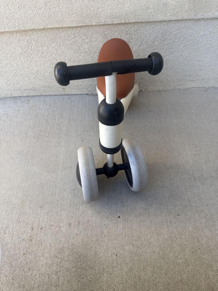 VenmoToddlers first balance bike. Has wheels doubled up on back for better stance snd balancing.