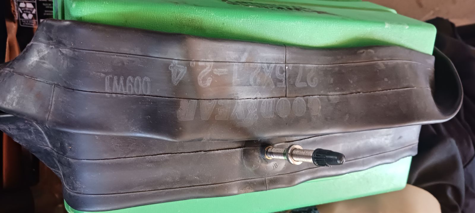 27.5 Goodyear presta. If ya have trade 26 or 29er I'd be willing to trade offers welcomed