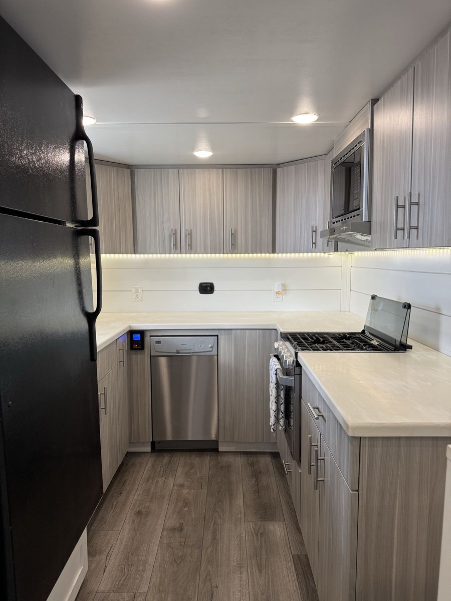 Note: It comes with a refrigerator/freezer and two TVs. We added a pantry that is removable and a lift top table that is also removable if not wanted.