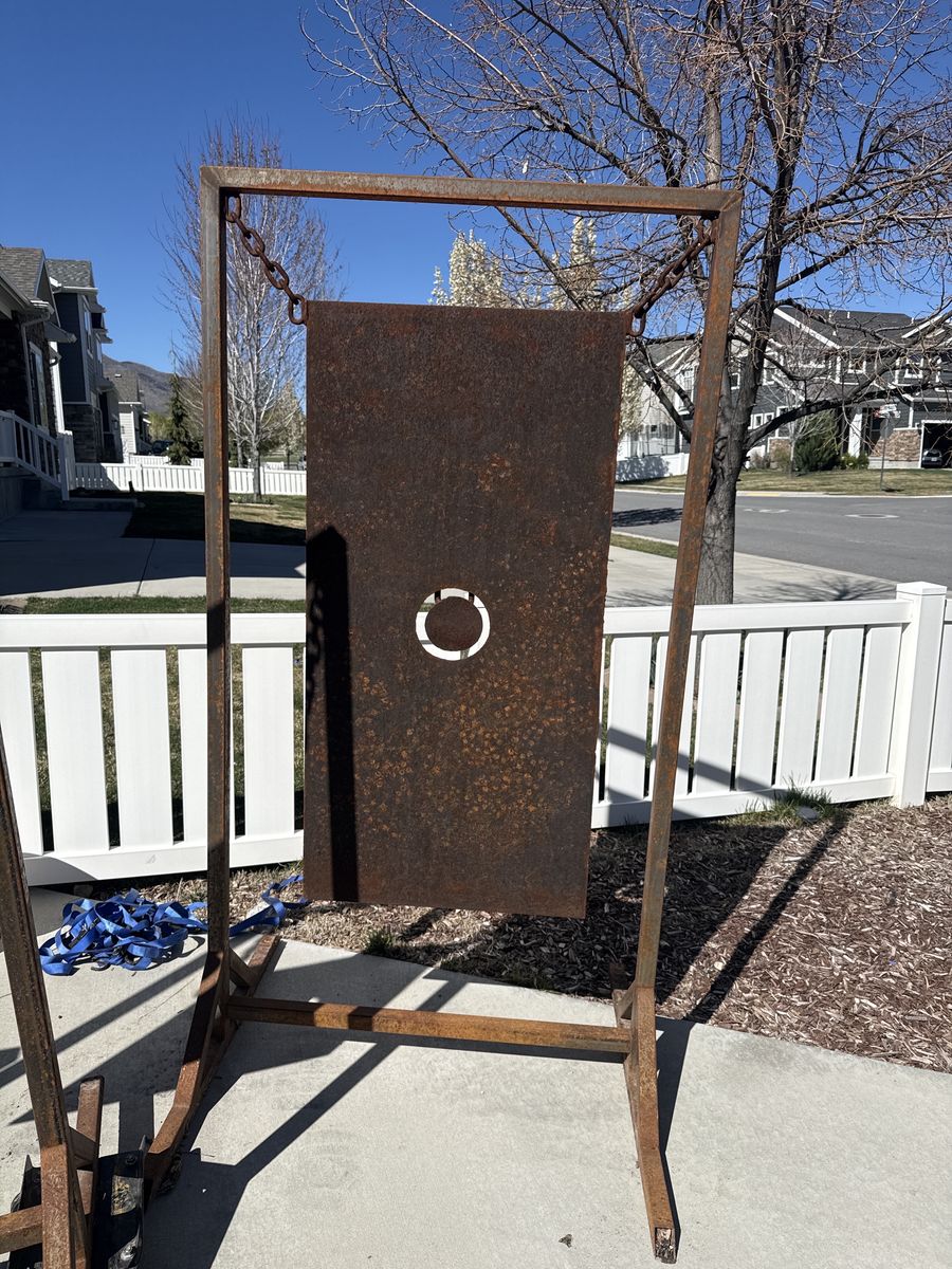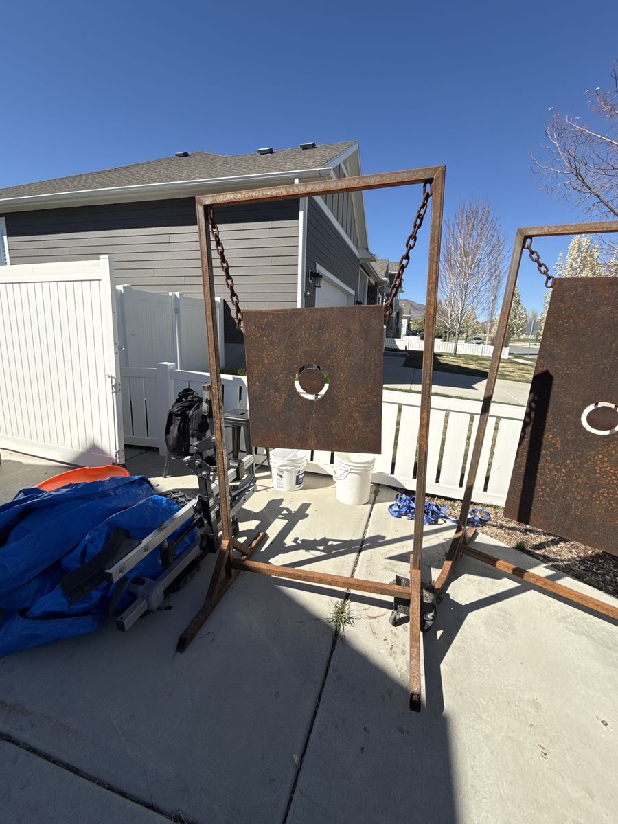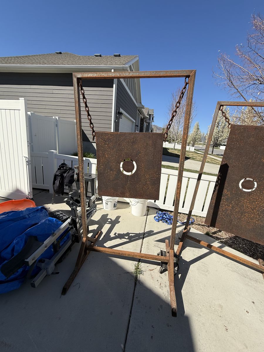 Large silhouette-style targets mounted on solid welded frames with chain hangers. Made for a cabin setup but never ended up being used.