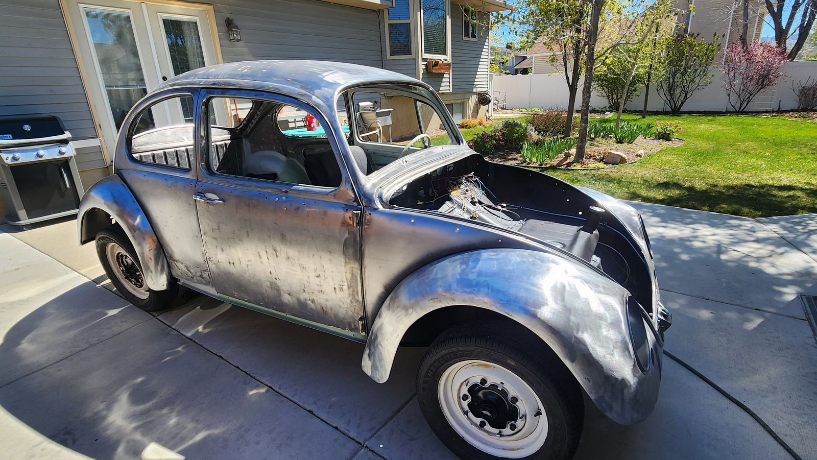 1965 Vw Beetle project. This Beetle is needing bodywork finished and paint to be completed. The chassis has been completely redone, new pans, heater channels firewall, napoleon hat, brake lines, bearings, brakes shocks etc. There are to many new parts to list every thing, has new complete wire harness, all glass except windshield, new trim and switches. Engine is a 40hp that was built by RedE motors and has only been broken in, car hasn't been on road since project started. I have oem parts that will be going with car, bumpers front and rear fenders and other parts. The car does have new fenders on it currently. Only selling to complete other project, not interested in trades. Clean title in hand