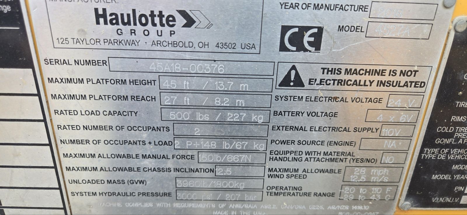 Haulotte 4527A towable man lift. Call or text for additional details