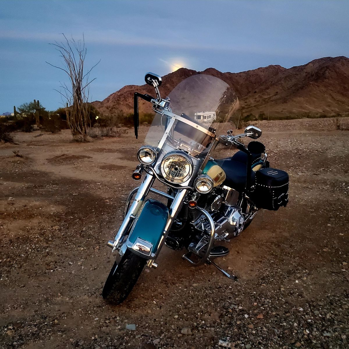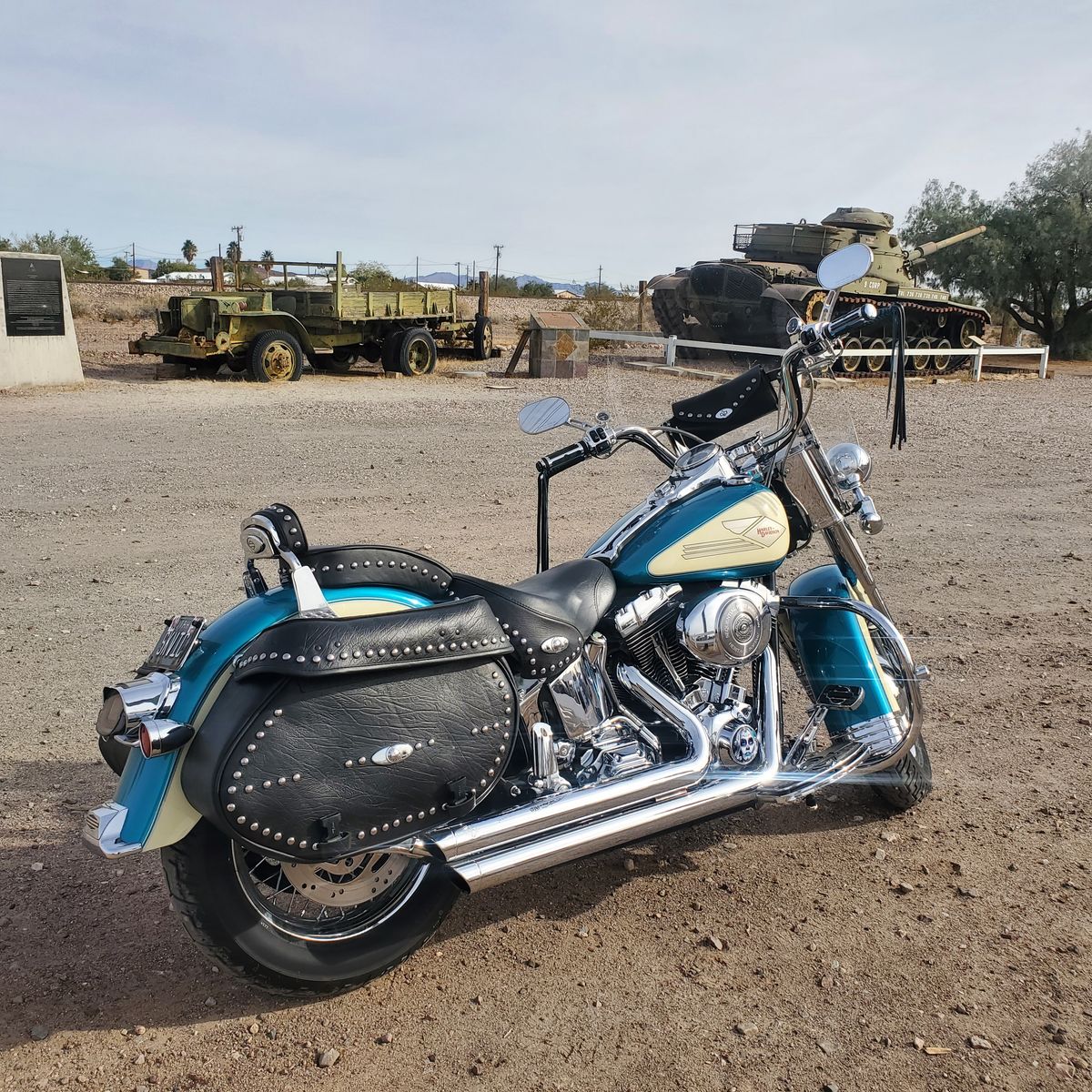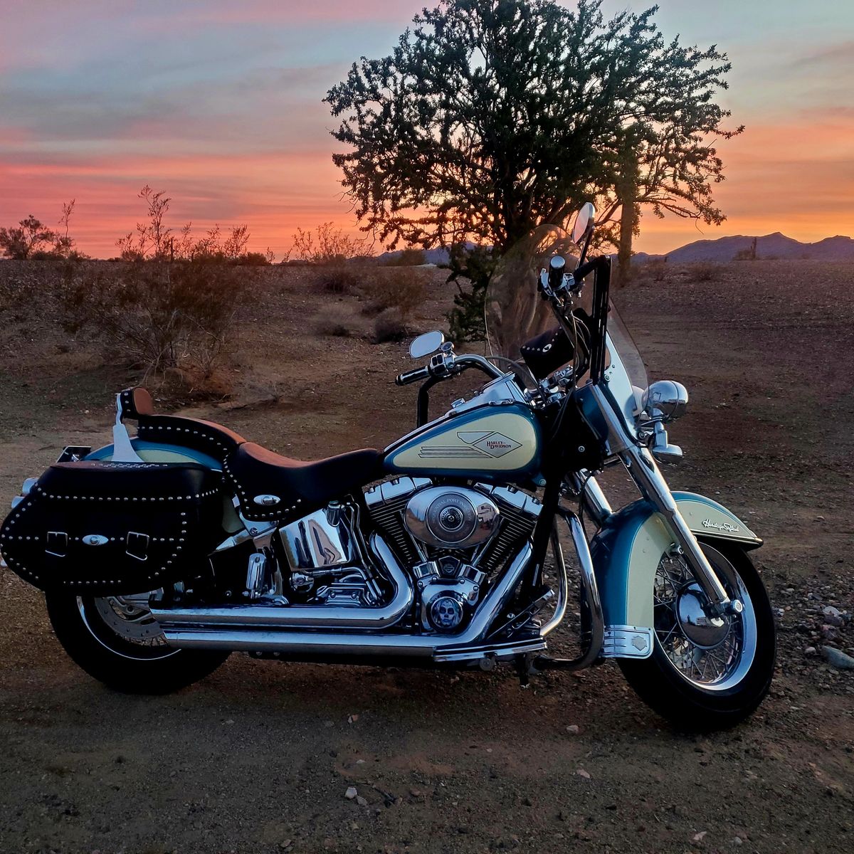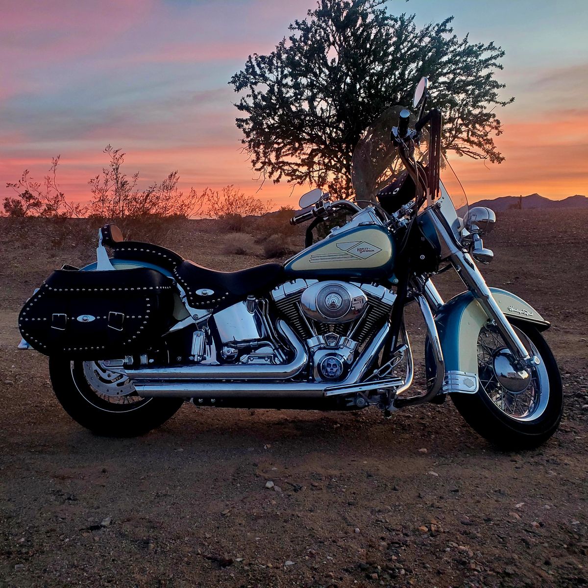 Beautiful 2004 Heritage Softail Classic in a standout teal and white two-tone. This bike has a clean, classic look with lots of chrome and a strong road presence.