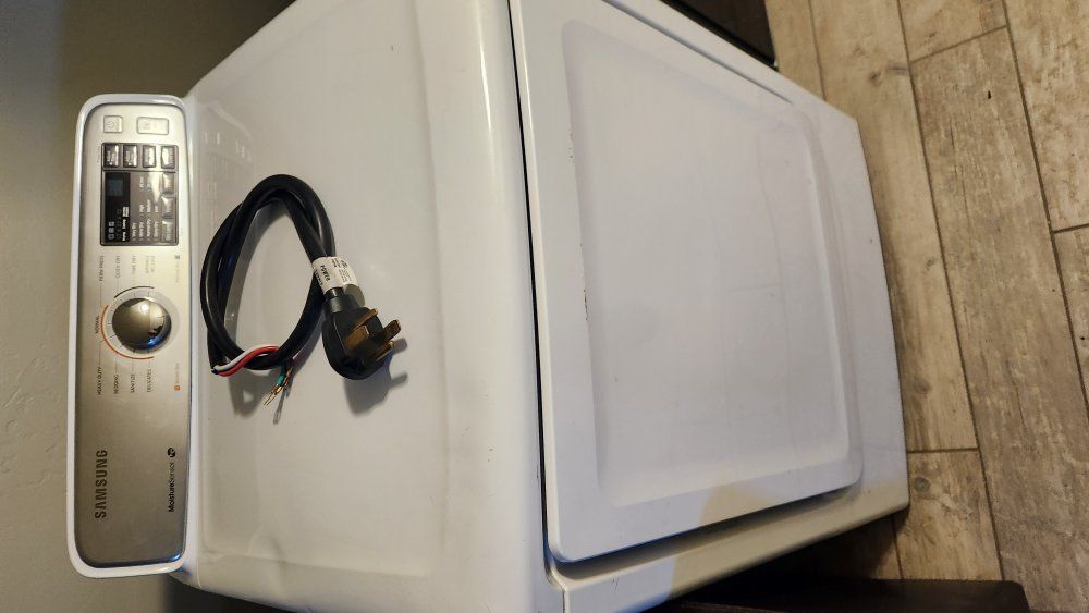 My dryer heating element went out last Christmas. I bought another Samsung dryer. I finally installed new heating element, 3 pulley wheels, 2 new sensors attached to heating element on April 1st. Super clean inside the dryer box. I haven't try to see if it works. Due to power supply cord 3 prongs I took it off from this dryer to my new dryer. I have 4 prongs. Selling as is for 60 bucks. Its should work. texts only 801 458-8644 thanks