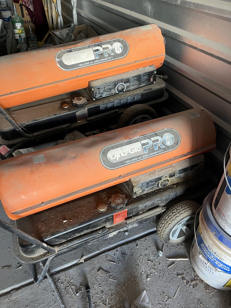 Heaters. Only used once. one project. Stored in shop. $399 each retail.
