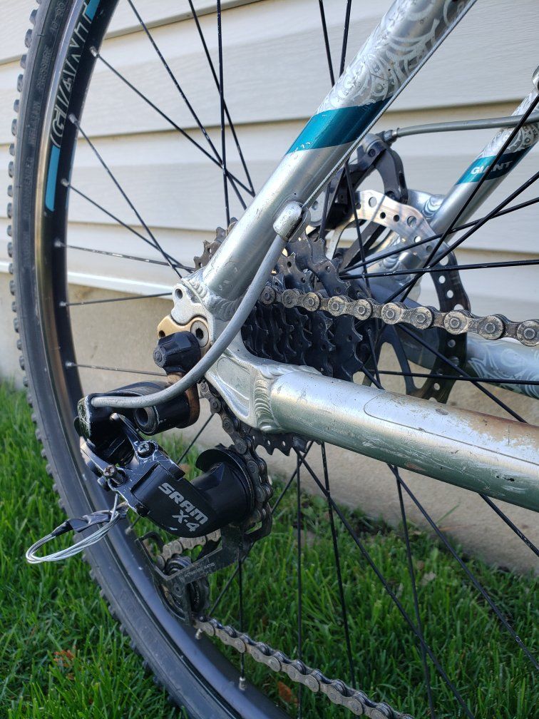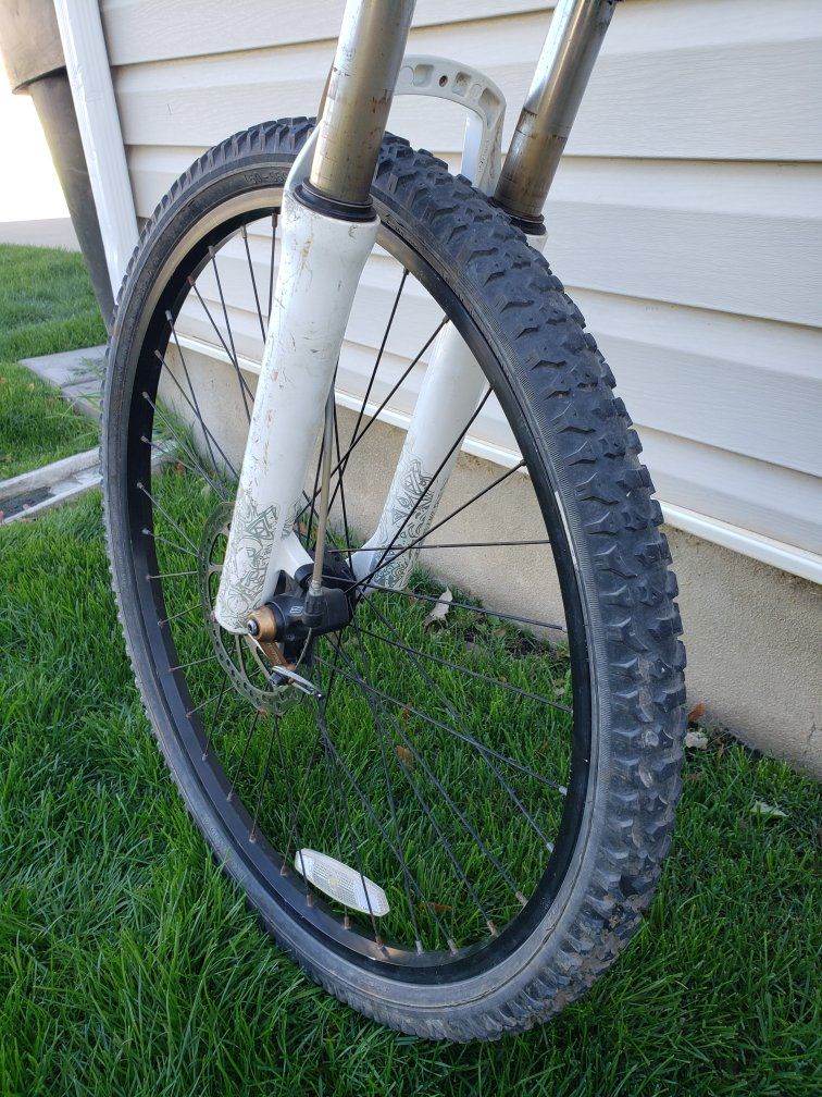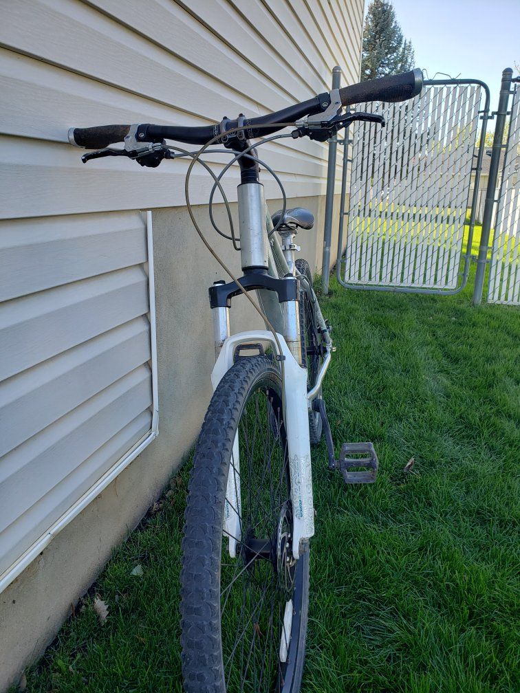 18" Medium aluminum frame. Good tires. Sram rear derailleur. Everything works.