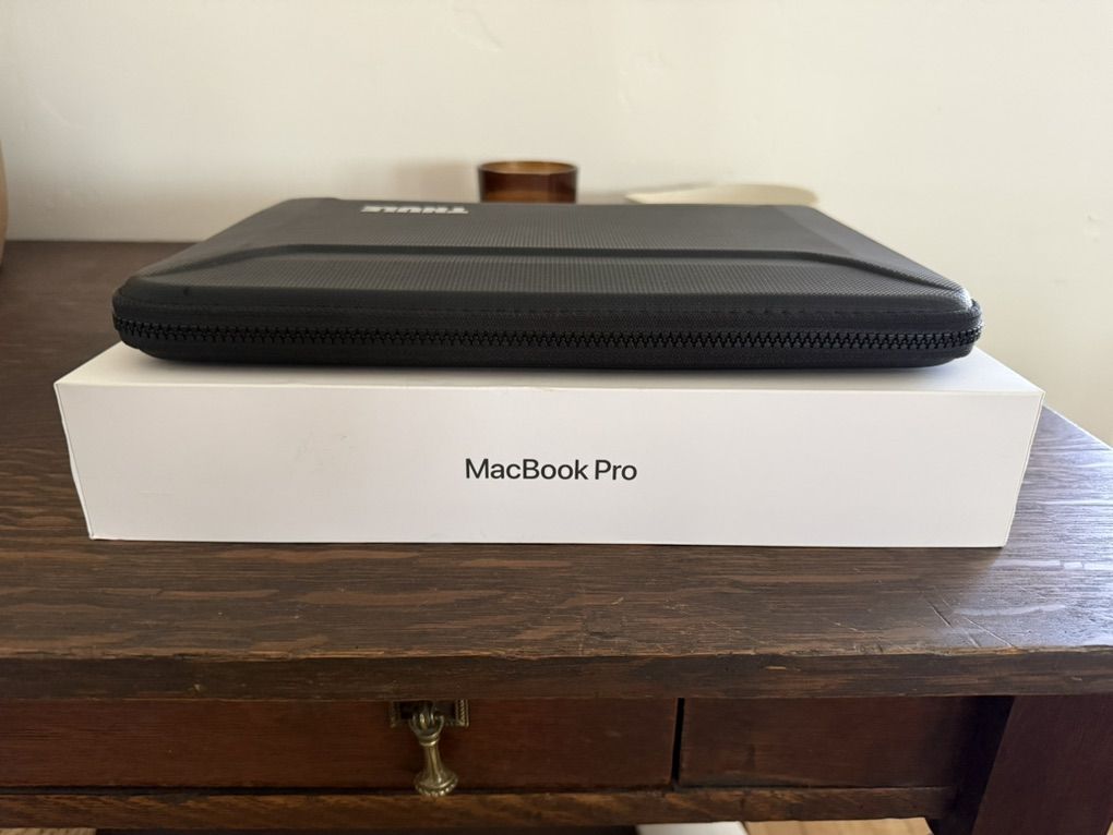 Includes a Thule Gauntlet case (the best case ever made) and the original box, power supply, and mag safe cable.