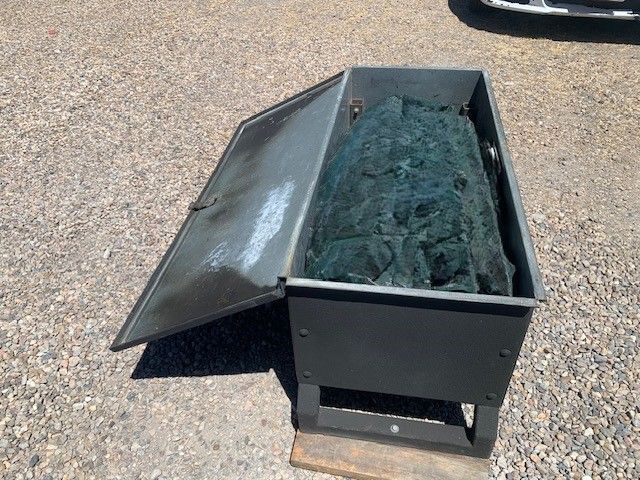 VenmoTruck box for full size (8'long) pickup truck bed. 18 Gauge galvanized steel coated on the outside with "LineX" truck bed liner. It is 48"x24"x18"H standing on 6" high legs. You can slide 48" plywood sheets under it. Locking hasp on the front.