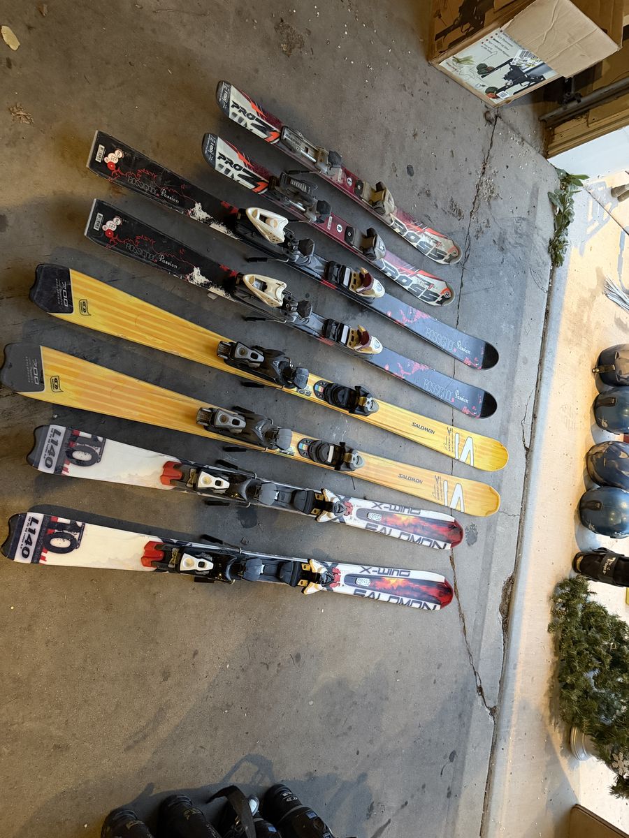 VenmoSeveral pairs of skis available, including kids (1 pair) and adult sizes (3 pair). All adult sizes come with bindings and are great for beginners or extra gear for the family. The kids set is free FCFS and includes polls and helmet (not pictured). One ski is missing part of the binding fyi.