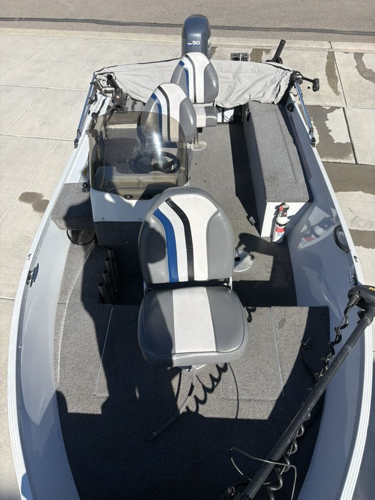 Amazing g3 fishing boat 50hp 4 stroke Yamaha works perfectly Mint carpet Mint boat Always stored indoors Trolling motor with spot lock 2 down riggers bimini 2 live wells Lots of storage Title in hand