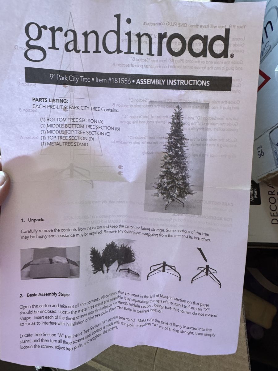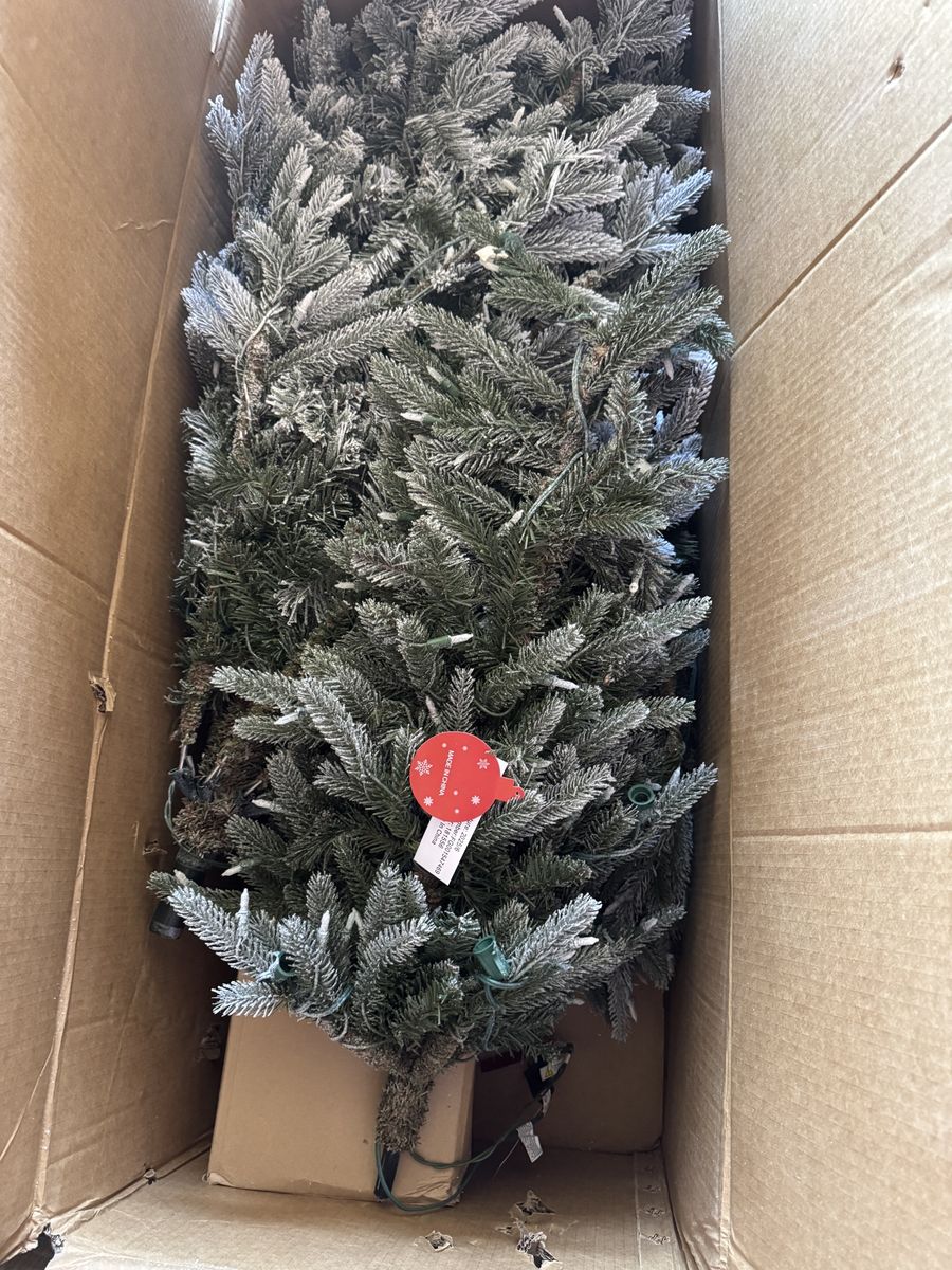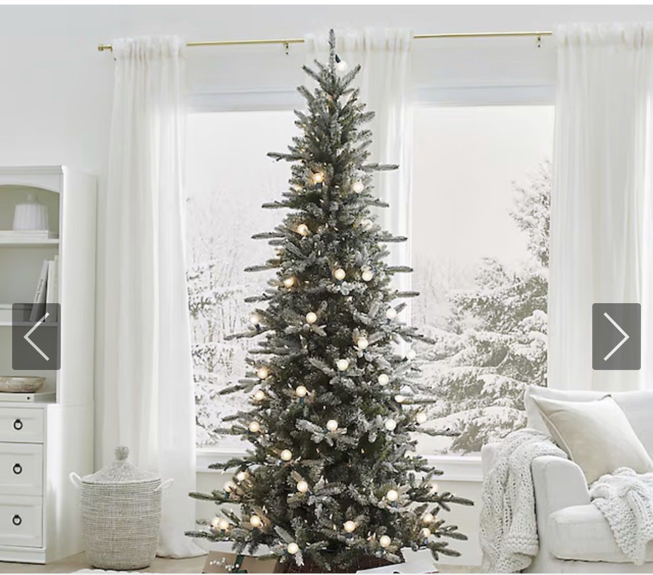 New Grandinroad Park City Christmas tree. Slim-profile, lifelike Christmas tree with realistic snow flocking. Retails for over $1,000. It is missing the stand.